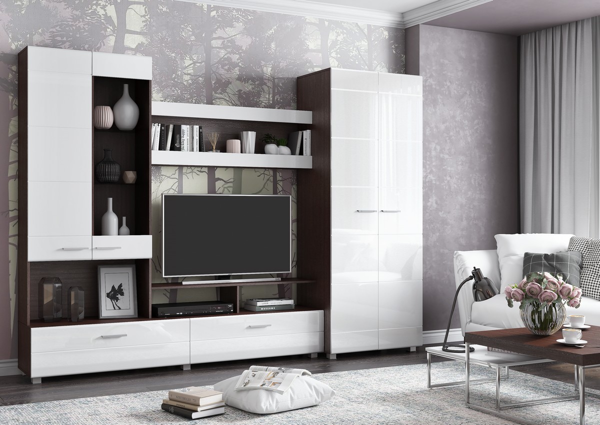 Многофункциональная стенка гостиной «Камила» выполнена в строгом скандинавском стиле. Эта стенка – отличное решение для оформления интерьера просторной гостиной.