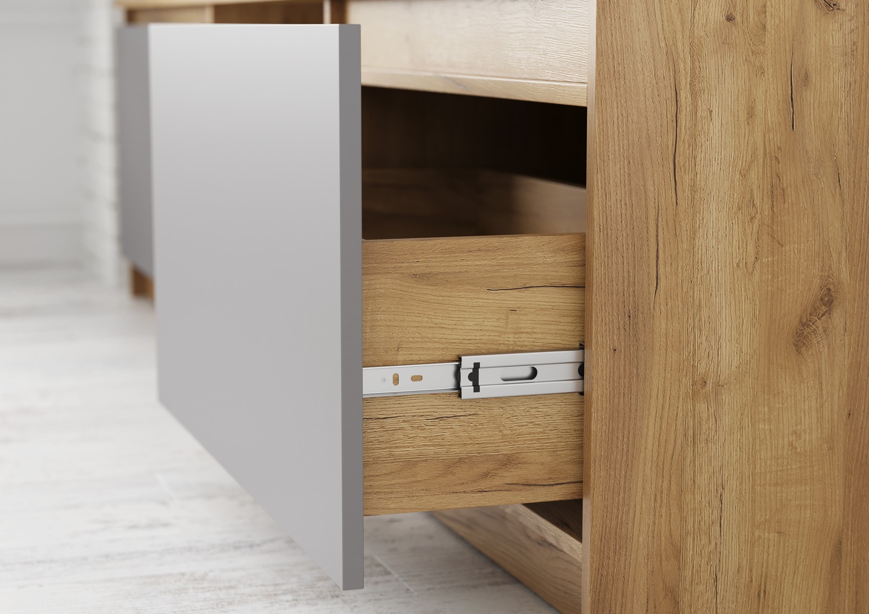•    Два выдвижных ящика на направляющих полного выдвижения, направляющие выдерживают нагрузку до 45 килограмм
