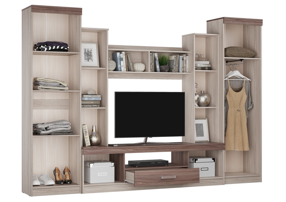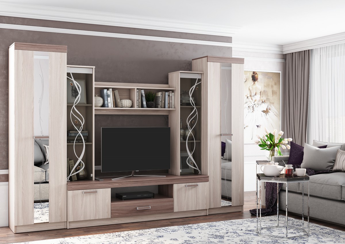 Выполненная в строгом классическом стиле стенка «Атлантида-2Б» - пример удачного совмещения элегантного дизайна и функциональности. «Атлантида» станет отличным дополнением для просторной светлой гостиной.