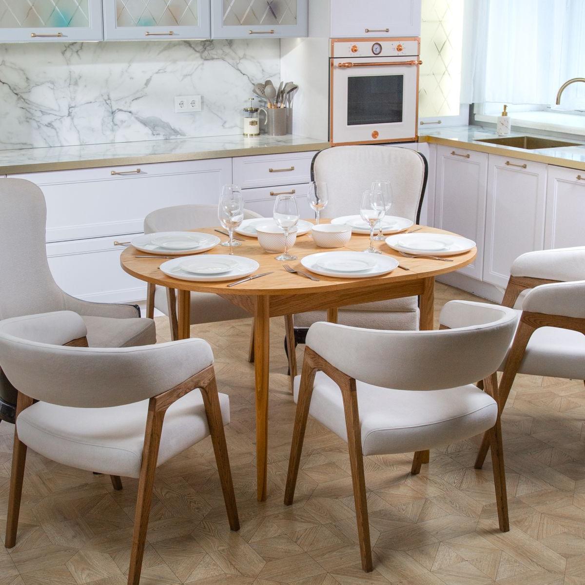 Круглый, раздвижной стол. Дубовый шпон, массив ясеня