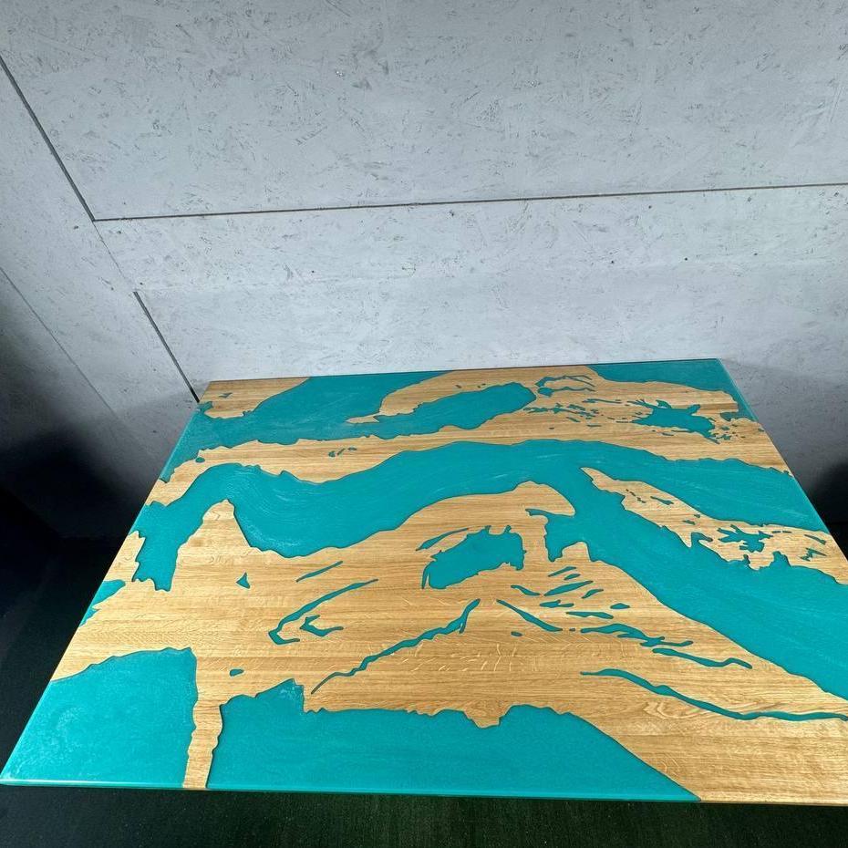 Стол ручной работы из массива дуба и эпоксидной смолы в наличии от производителя Angerwood.