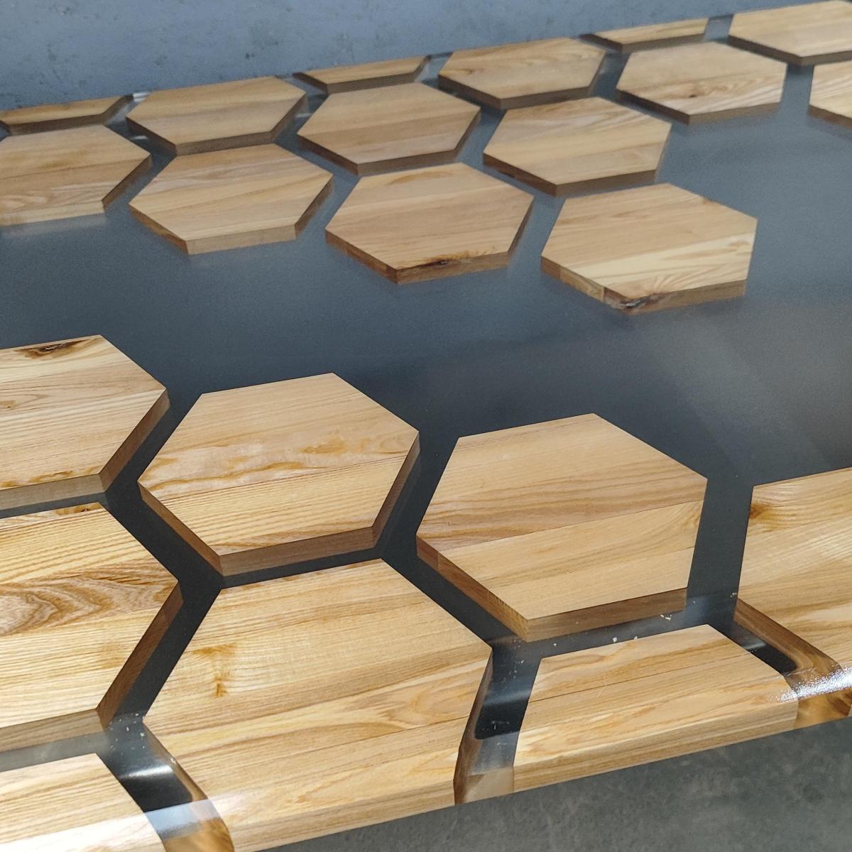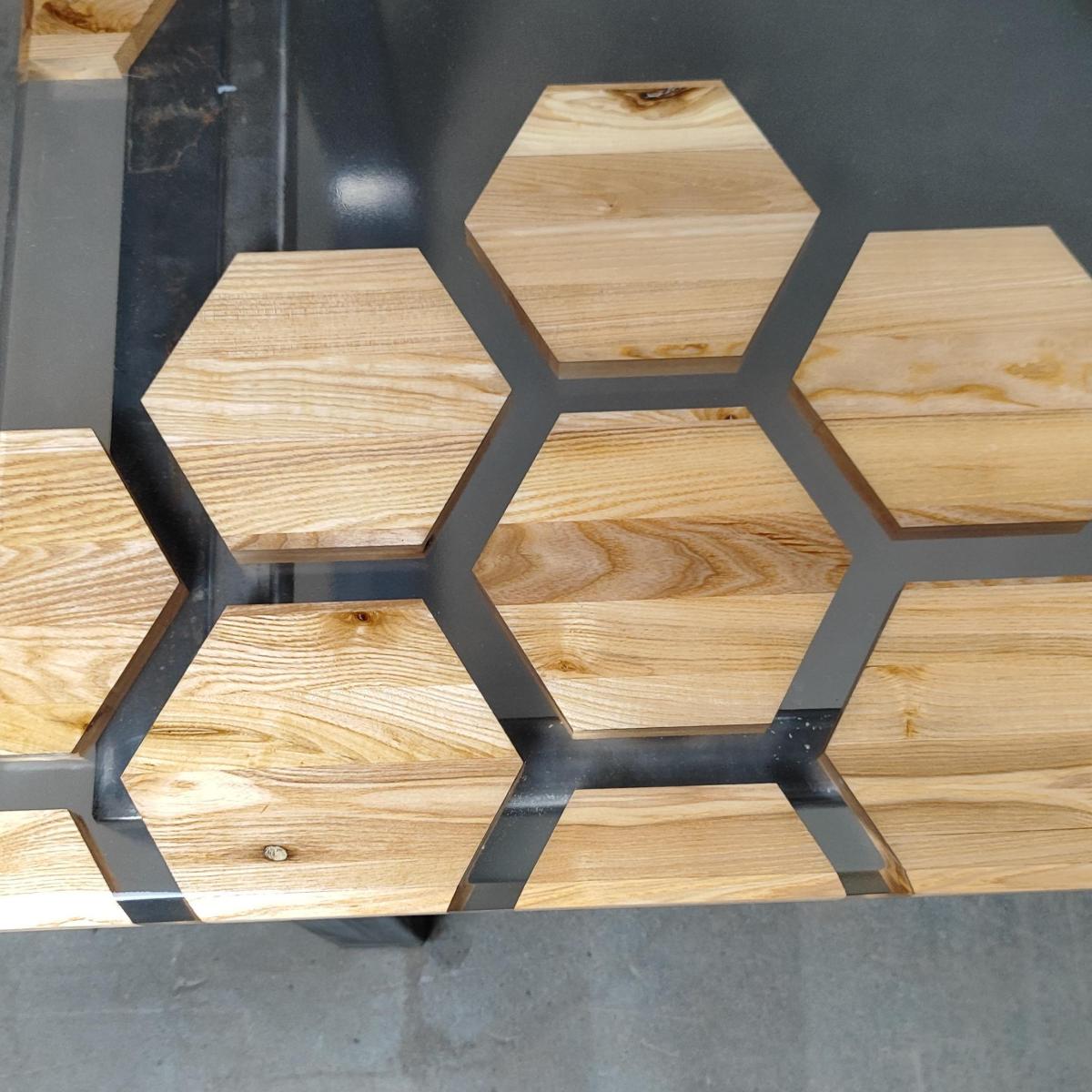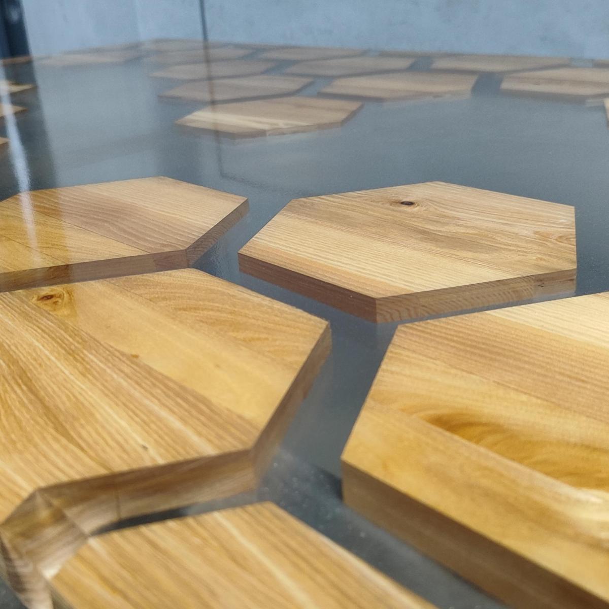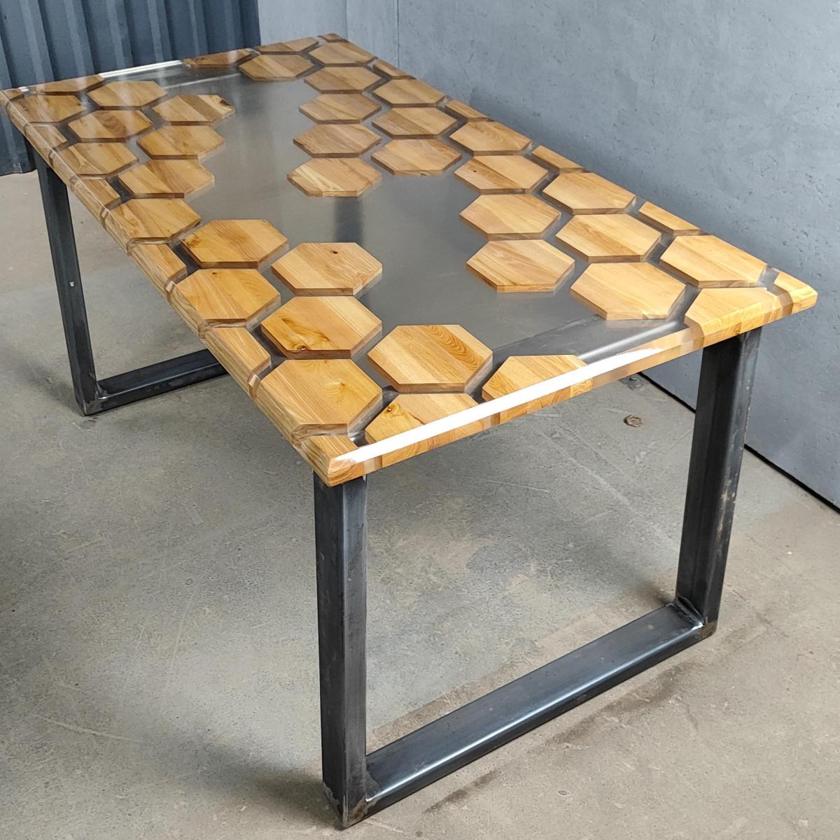 Стол из массива дуба и эпоксидной смолы Соты