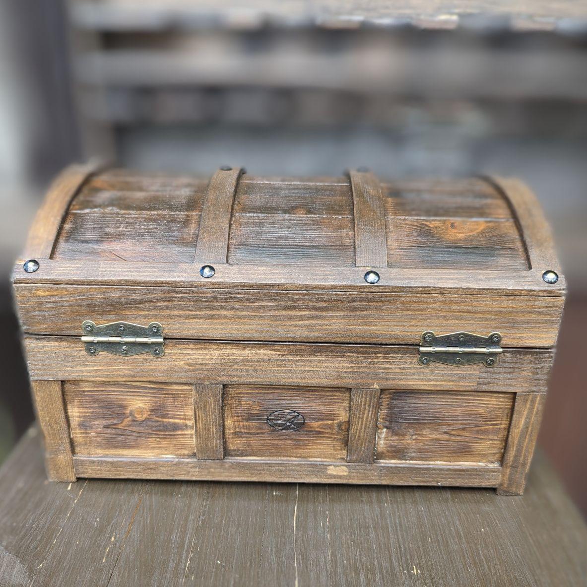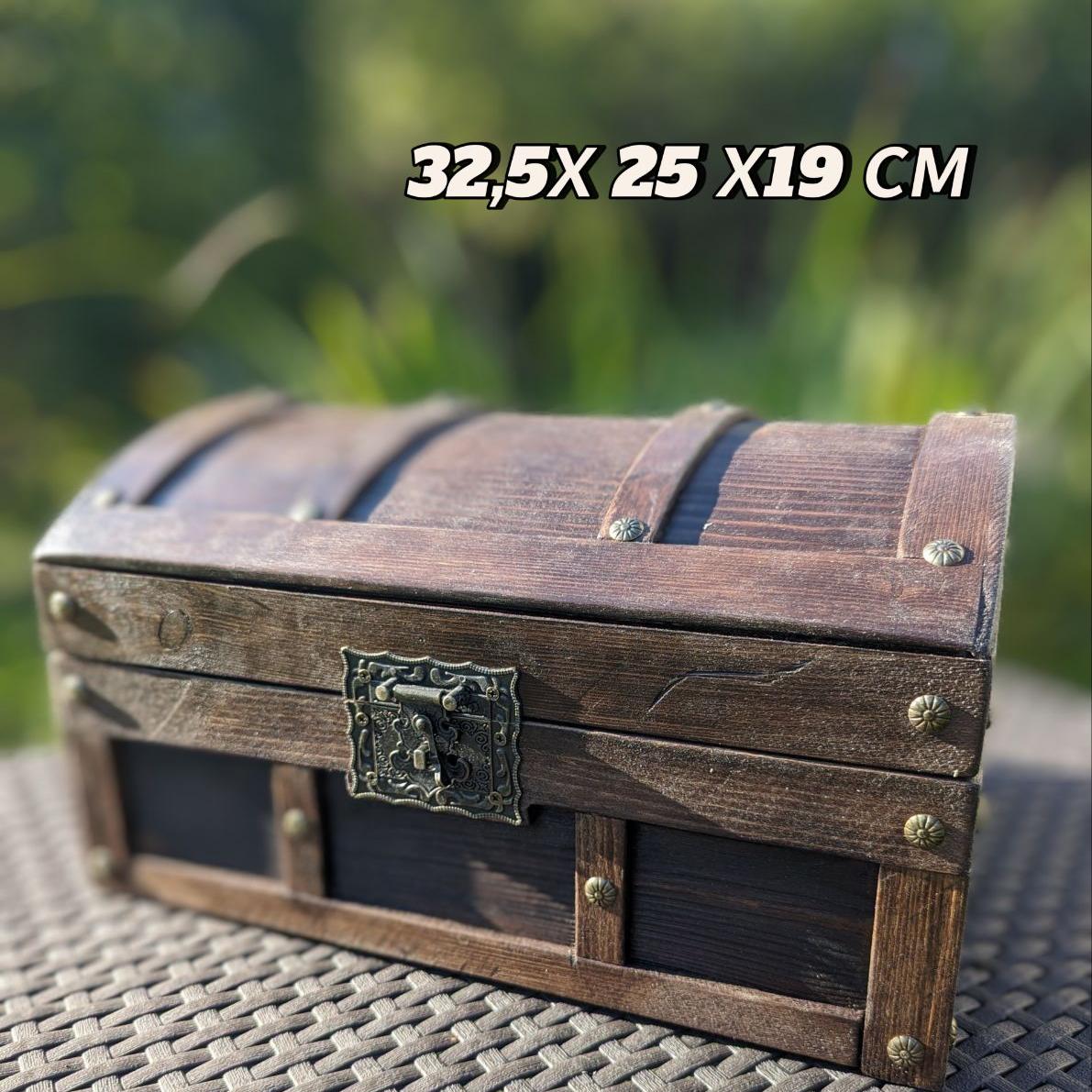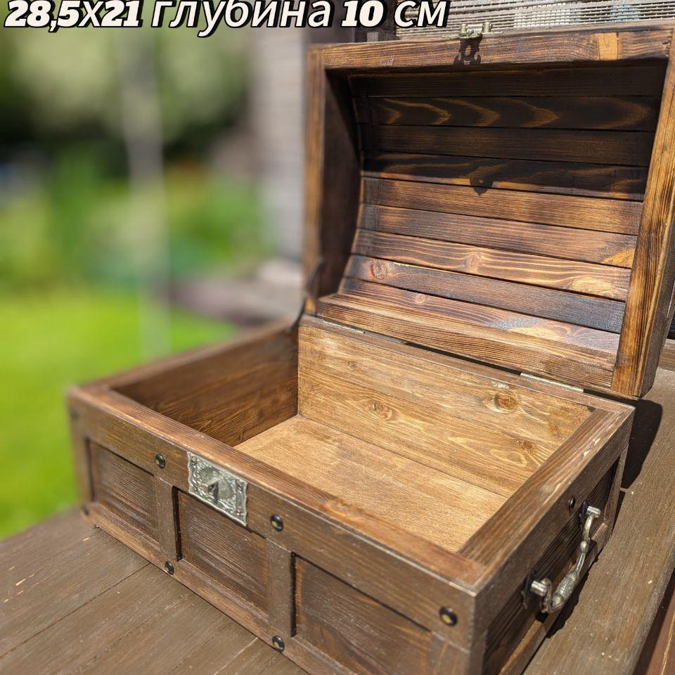 Каждый сундук уникален и неповторим из за особенностей дерева и сделан с душой. Потертости и трещины не являются дефектом и созданы умышленно.