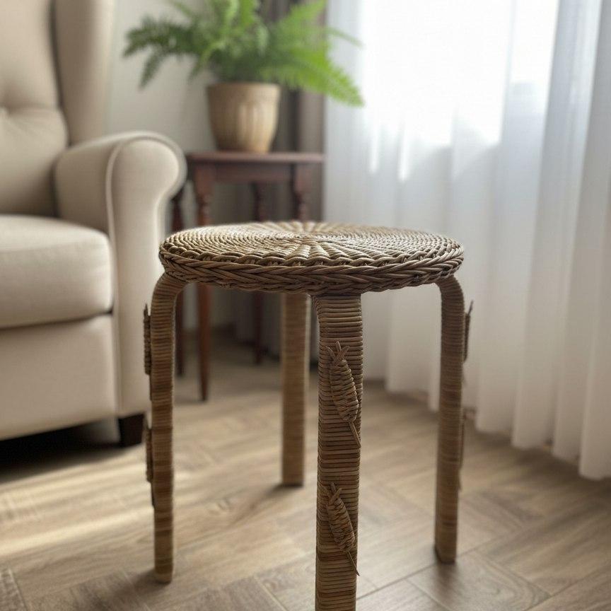 Табурет плетеный из бумажной лозы «Дубовый колосок» — уют и экологичность.