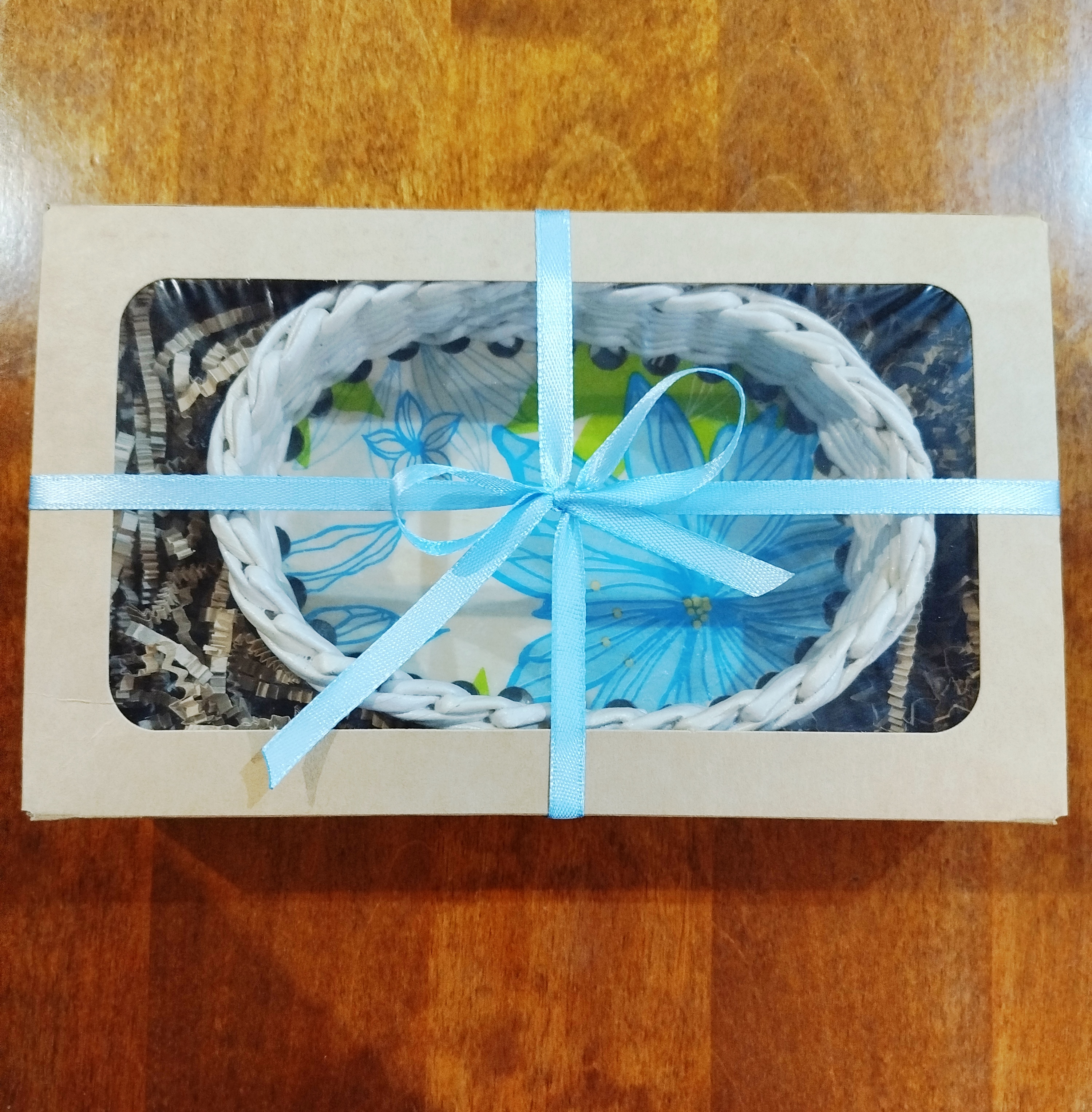 Упаковка - крафткоробка с окном + новогодний декор (открытка, лента, веточка можжевельника) по желанию.
