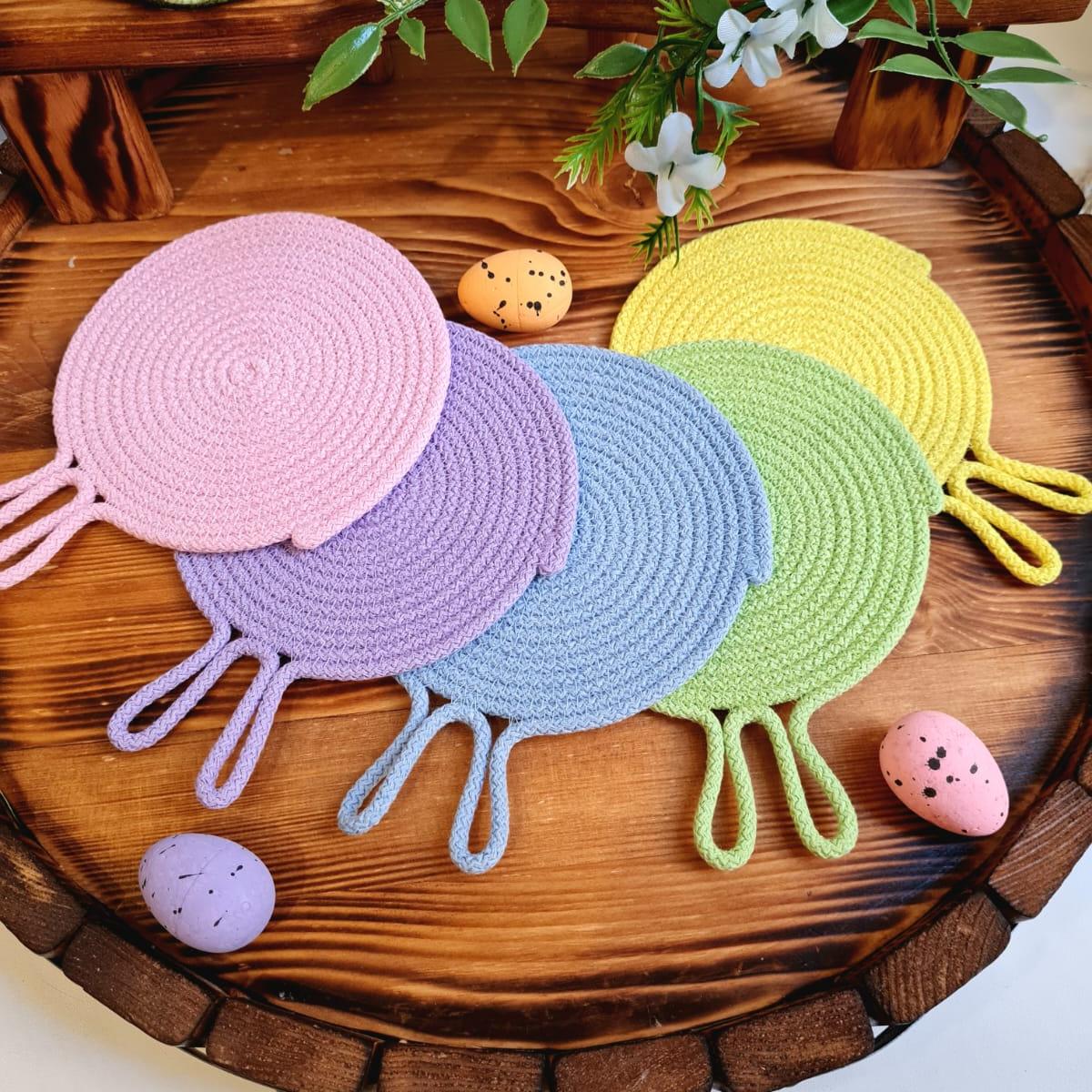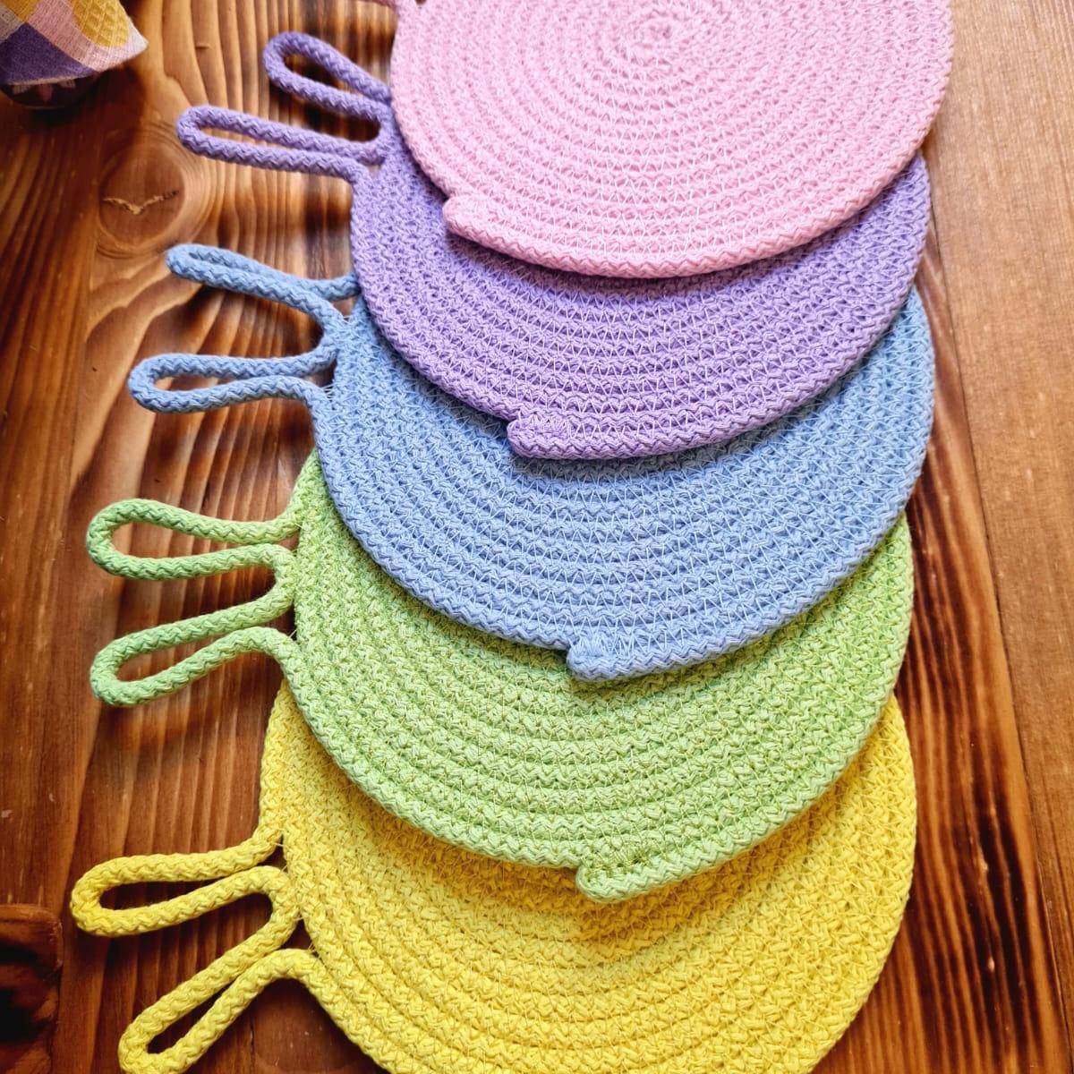 5 салфеток и 5 пашотниц все из того же хлопкого шнура толщиной 5 мм.