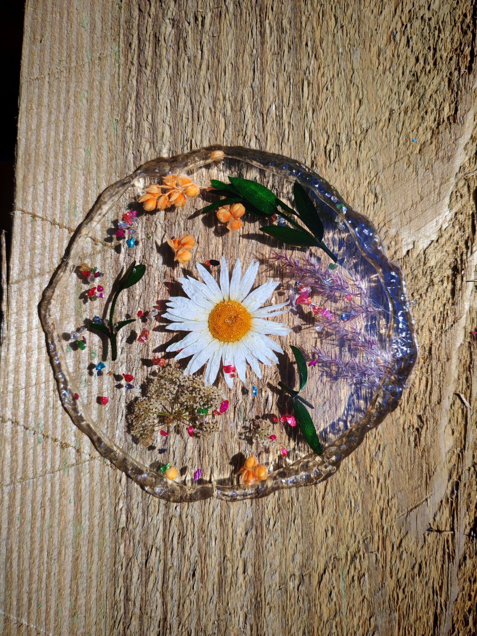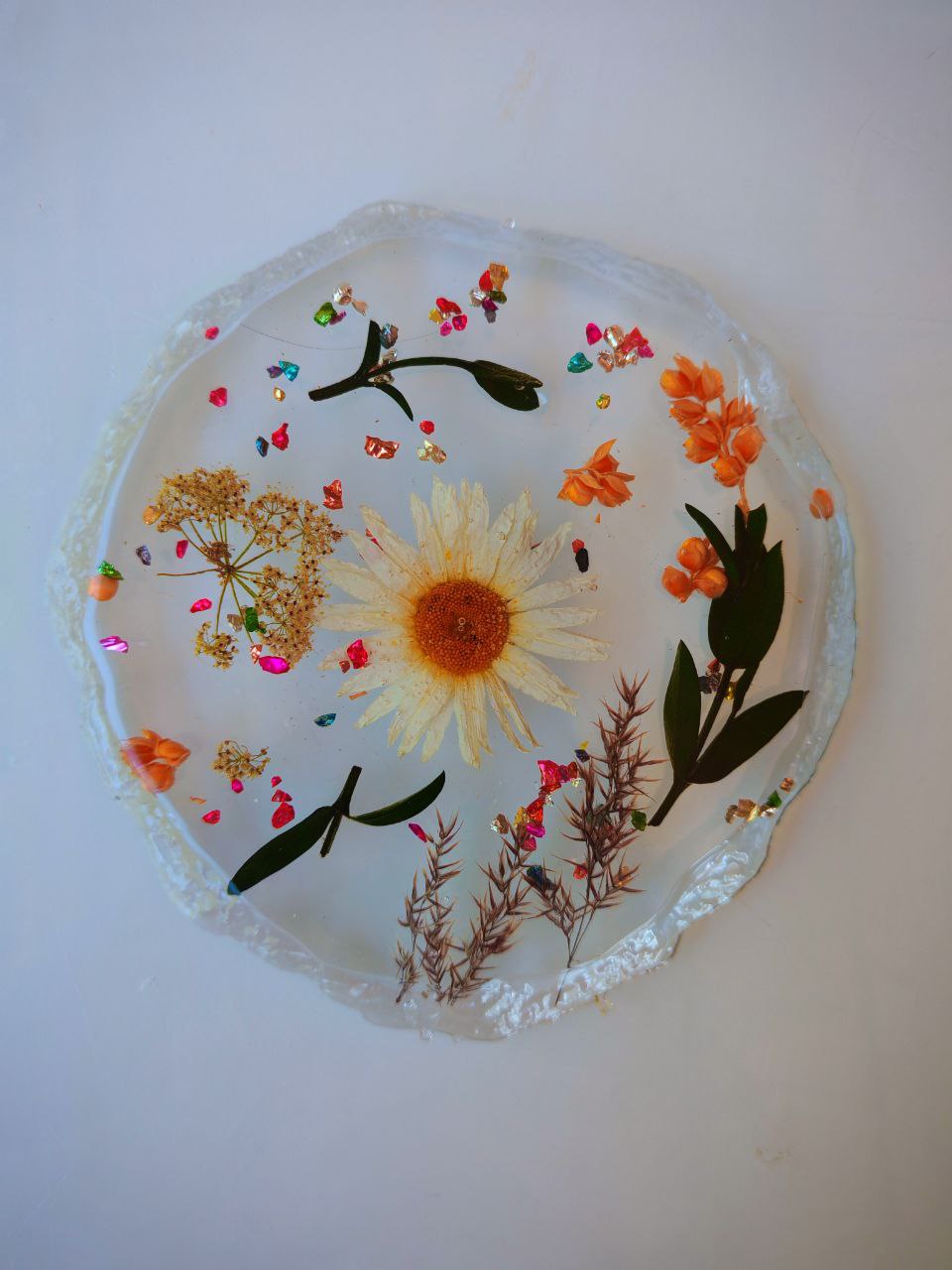 Подставка из эпоксидной смолы с настоящими травами и цветами