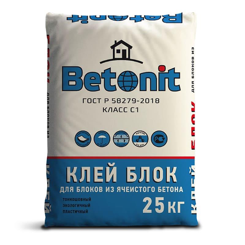 «Betonit Блок» — клеевой состав, разработанный для тонкослойного монтажа блоков и плит из ячеистого бетона, как внутри, так и снаружи зданий, с целью предотвращения появление мостиков холода в местах стыковочных швов. Тем самым клей эффективно поддерживает теплоизоляционные свойства ячеистого бетона.