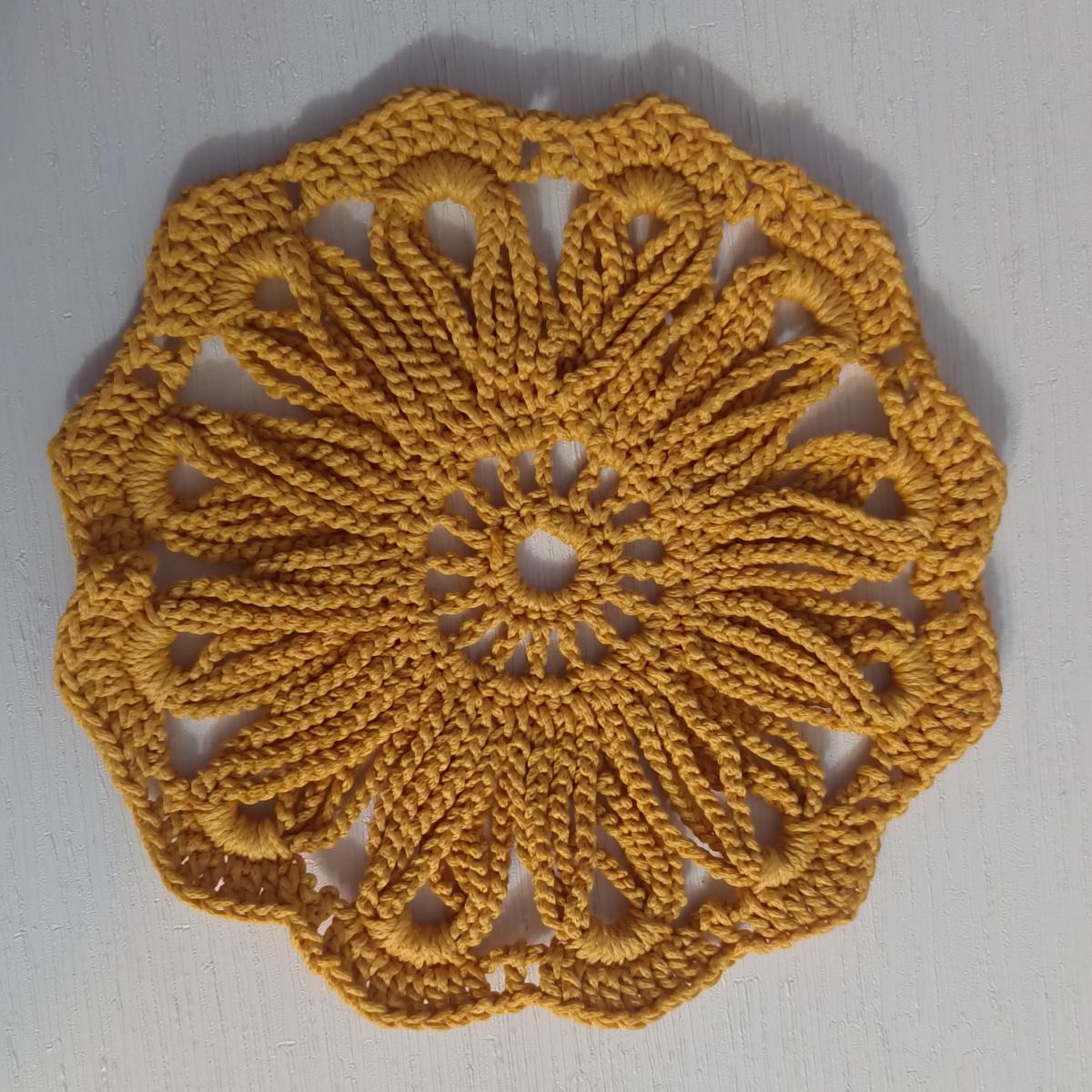 Салфетка декоративная в форме цветка, связана из полиэфирного шнура. Размер салфетки 20 см.
