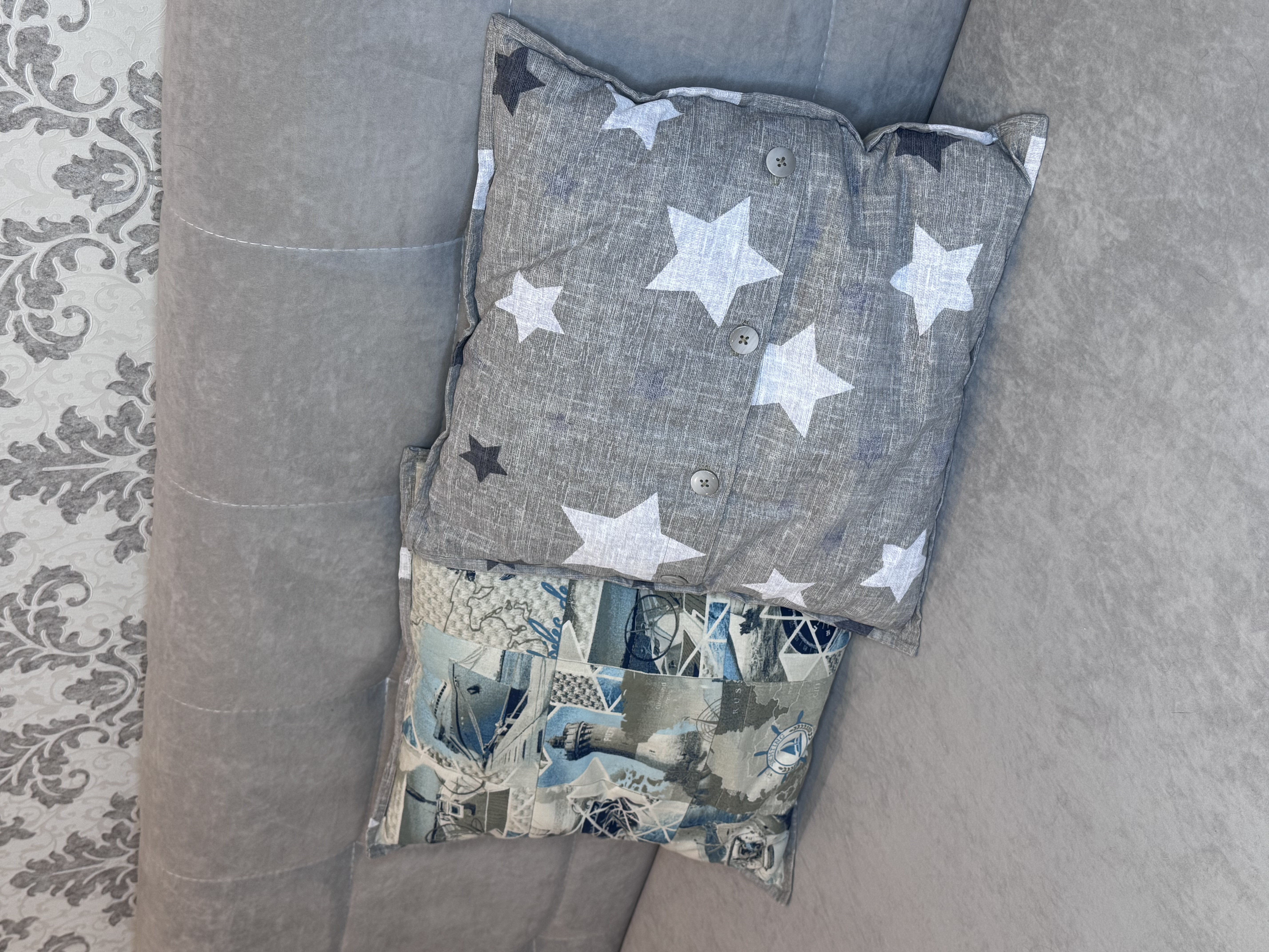 Подушки (наволочки) 45см*45см - Выполнено из натурального хлопка, лицевая сторона простегана, для обьема и мягкости проложен синтепон, сзади застегиваются на пуговицы