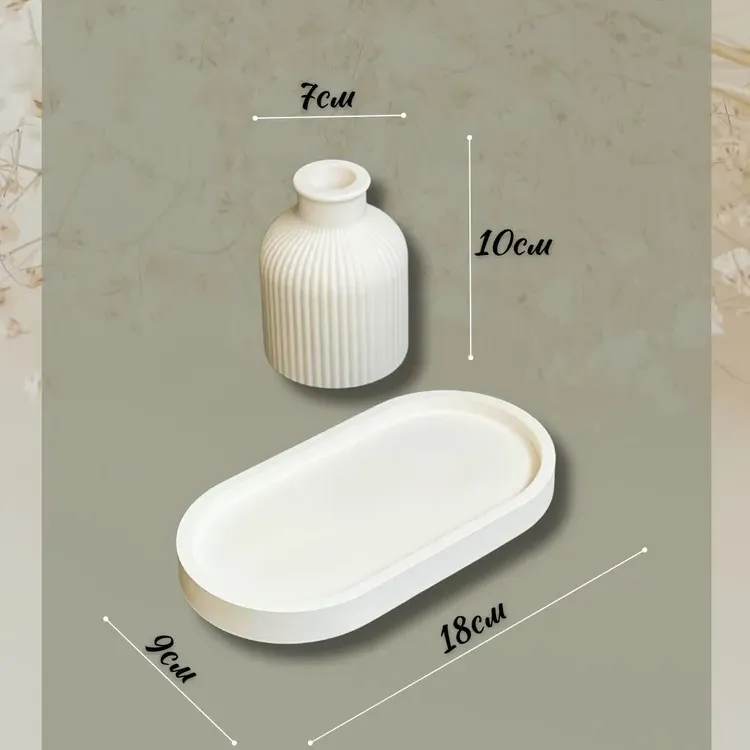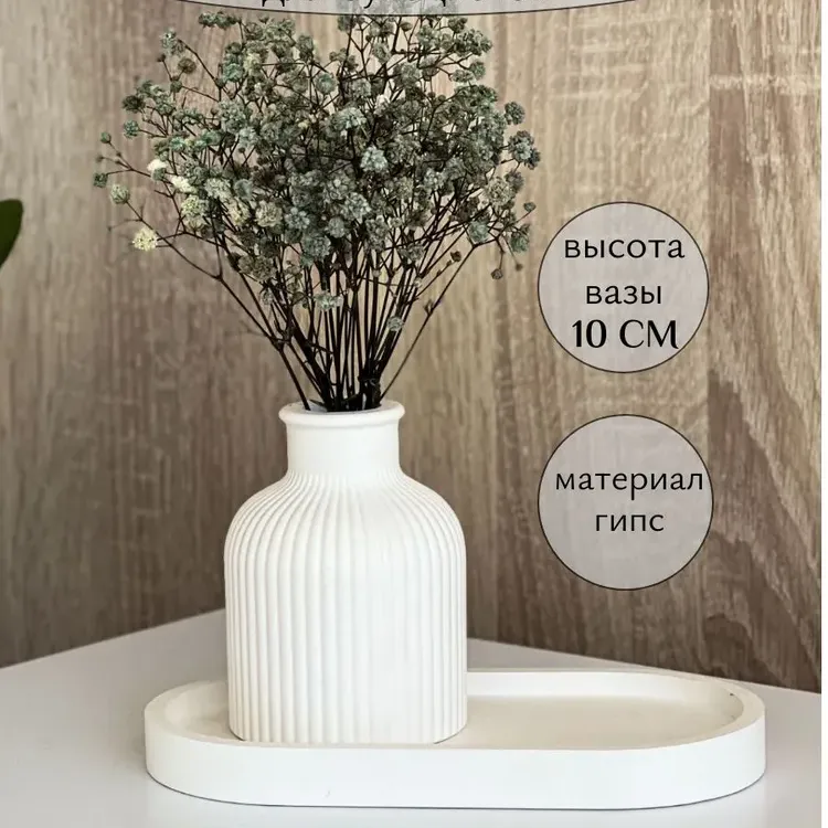 Внимание!!! Убедительно рекомендуем перед заказом ознакомиться с размерами набора! Набор из гипса - идеальный выбор для создания гармонии в интерьере . Этот декоративный набор включает в себя вазочку, размером 10 см и поднос , которые станут прекрасным акцентом в любом помещении . Каждое изделие в наборе изготовлено из экологически чистого гипса, что делает его безопасным для здоровья и природы . Благодаря своему натуральному материалу , набор не только привлекателен визуально , но и приятен на ощупь . Ваза для сухоцветов с декоративной подставкой для украшений легко впишутся в любую обстановку . Их дизайн и утонченные формы делают подарочный комплект универсальным, позволяя использовать его в различных комнатах - гостиной, спальне и даже ванной комнате . Овальный поднос подставку можно использовать как ключницу , органайзер для украшений , мелочи , а так же свободное место на подносе можно заполнить ароматической свечей или диффузором . Вазу можно использовать только для сухоцветов или искусственных цветов. Так же подставка и ваза подходят как набор для творчества. Интерьерный набор для дома может стать прекрасным подарком для мамы, сестры или подруги. Гипсовая фигурка -оригинальный и запоминающийся сувенир,который придаст изысканность любой поверхности .Сувенирный набор отлично смотрится в салоне красоты, медицинском центре , на ресепшене, а так же в кафе и ресторане. Изделия из гипса всегда выглядят стильно , эстетично и актуально в любое время . Ваза белая имеет красивый рельефный дизайн и ее можно использовать как в комплекте , так и раздельно. Этот подарочный комплект станет украшением вашего подоконника, окна или стола. Стильный , трендовый наборчик дополнит любой интерьер дома. Все элементы данной композиции из двух предметов - полностью ручная работа , производятся в России . На изделиях из гипса допускаются небольшие дырочки , это свойственно для натурального гипса и не считается браком . Ухаживать очень легко , достаточно протереть влажной салфеткой . Если вы хотите подобрать подарок на день рождения , 8 марта, Новый год, новоселье, свадьбу , День матери , 1 сентября, День учителя -то этот набор послужит подарком на любой случай , он подчеркнет Ваш стиль и вкус . Белые гипсовые изделия шикарно смотрятся в медицинских центрах и ресепшене салона красоты , в бутиках одежды и во многих других современных помещениях.