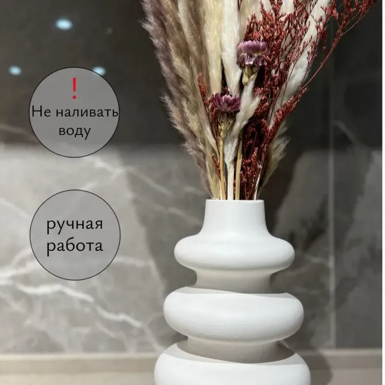 Самая необычная и эксклюзивная ваза оригинальной формы из высокопрочного гипса. Широкая, тяжелая и устойчивая. Белая гипсовая ваза для цветов в китайском стиле .Горлышко вазы круглое ровное. Размер по высоте средний (19см). Дно круглое, гладкое, не царапает поверхность мебели. Гипсовая посуда – это прекрасный элемент декора. Можно поставить в гостиную, спальню, на кухонный гарнитур. Внимательно изучите описание товара перед покупкой. Полностью ручная работа, произведено в России ! Прекрасно украсит любой интерьер и придаст изюминку вашему дому, а также прослужит вам долго при правильной эксплуатации. Эта вазочка также идеальна для любителей флористики. Прекрасно подойдет для декора свадебного стола или зала. Важно помнить, что Нельзя наливать воду!!!!! Небольшие пузырьки на изделии не являются браком, так как гипс - это пористый природный материал. Современная подставка для цветов идеально подходит для сухих и искусственных букетов, декоративных веточек (хлопок, бамбук, гипсофила, веточки вербы), композиций из сухоцветов. Она легко заменит стандартные вазы из стекла, керамики, дерева и других материалов . Вазу с гипсофилами можно использовать для фотосессий, составления композиций и натюрмортов. Это универсальный подарок как для женщин, так и для мужчин. Такая ваза , как символ заботы и внимания, будет прекрасным подарком для жены, мамы, сестры, подруге, бабушке на любой праздник , будь то День рождения, День матери или 8 марта .Порадуйте любого человека на профессиональный праздник (день учителя, воспитателя, медицинского работника, корпоратив). Украсить ресепшен салона красоты, медицинского центра, массажного салона так же вам поможет эта эстетическая белая гипсовая ваза. Привнесите уют и тепло в ваш дом с ДЕКОР67!