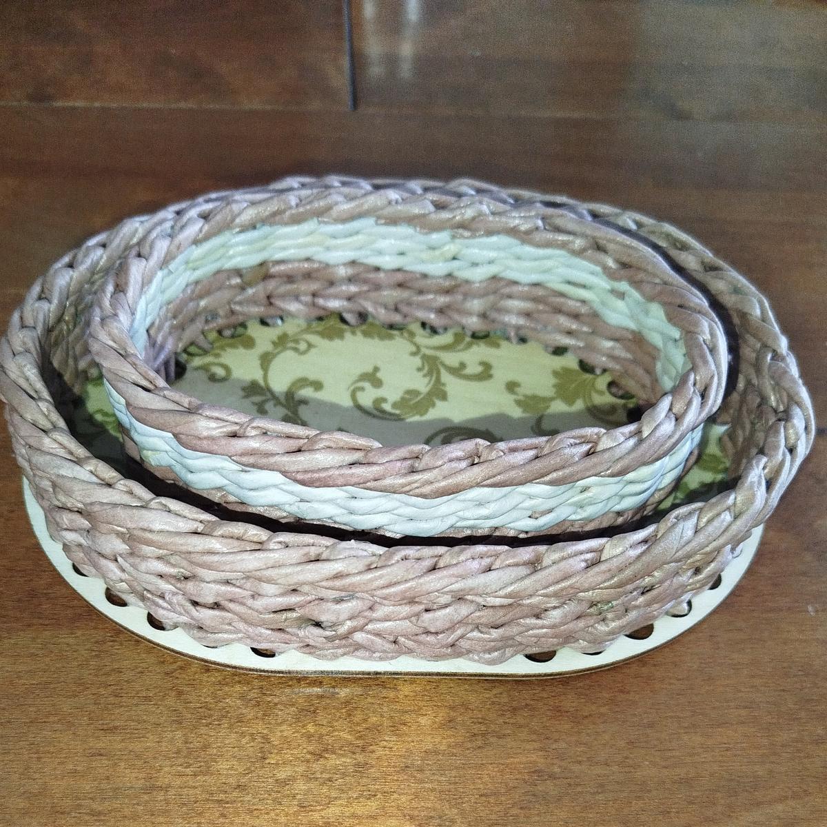 ПЛЕТЕНКА из бумажной лозы с фанерным дном 10*15 см;