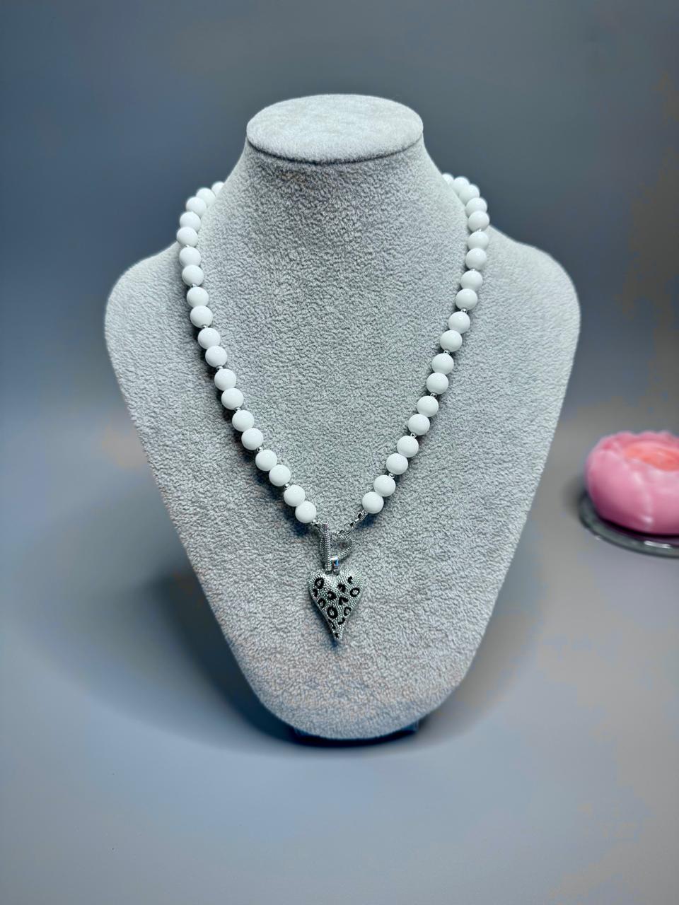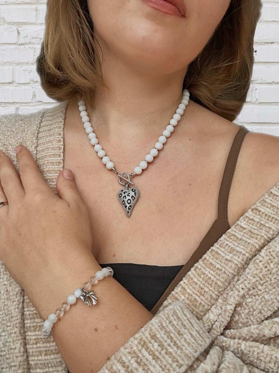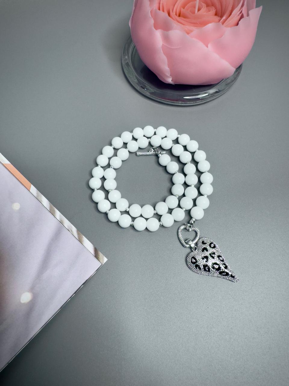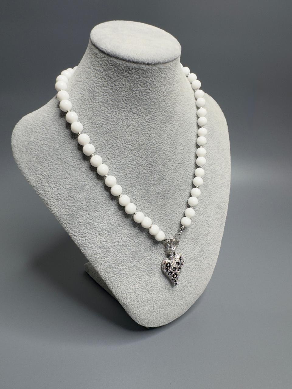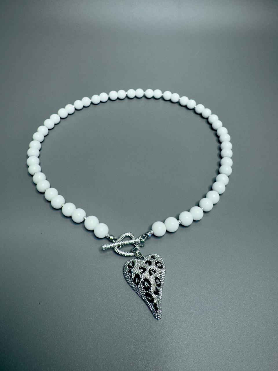 Колье из натурального белого агата и гематита.