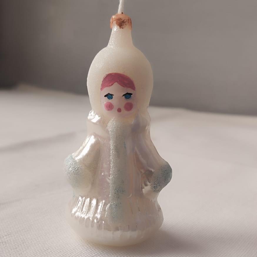 Свеча новогодняя игрушка Снегурочка мини ручной работы