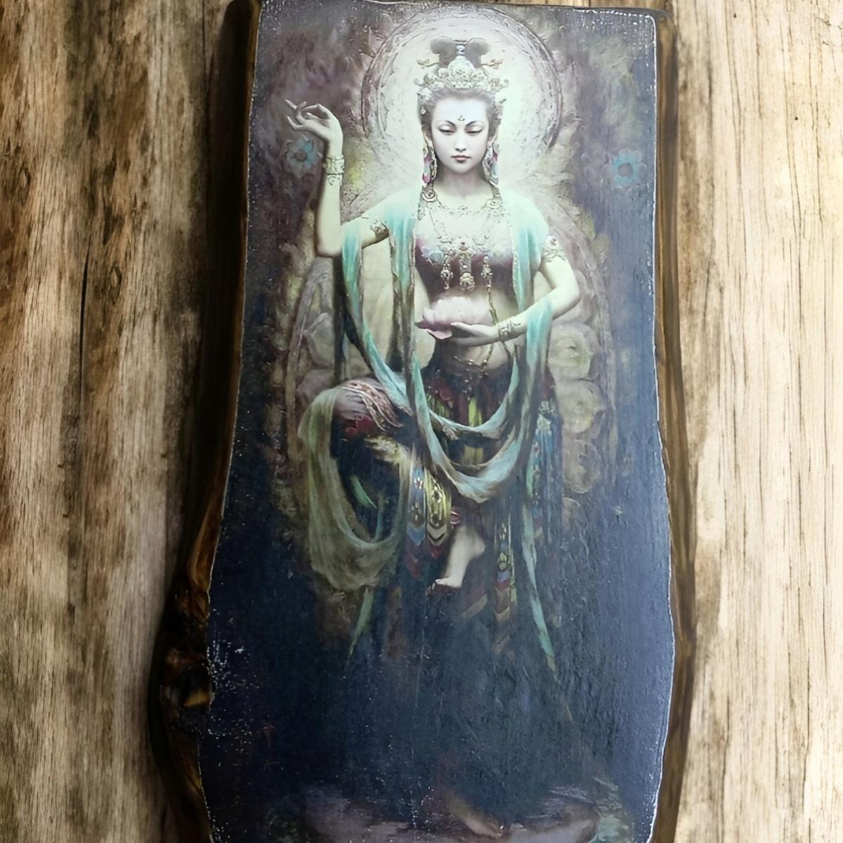 Богиня чистой любви, милосердия и сострадания. Она помогает излечить все болезни, помогает зачать ребенка, сбережет семью от бед. Она слышит всех. Она повсюду. У богини Милосердия нет ни капли гордости и мстительности. Она покровительствует каждому, кто к ней обращается, даже если этот человек с другого континента и религии.