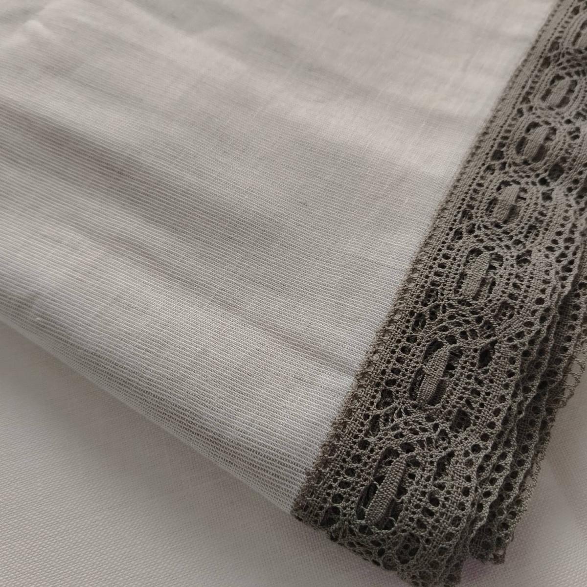 Льняная скатерть 155х225 см, серое хлопковое кружево по периметру. Ручной крой.