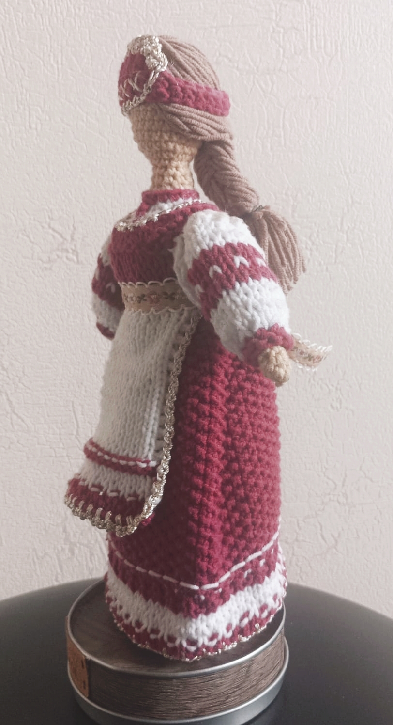 Вязаная кукла-оберег представляет собой уникальную куклу ручной работы, выполненную в технике вязания крючком. Защитница, хранительница, успешница. С давних времён считается, что кукла оберег или берегиня  сохраняет  доброжелательную атмосферу в доме, бережёт покой и счастье. Для этого она изготавливается исключительно с чистыми мыслями,и добрыми пожеланиями.
