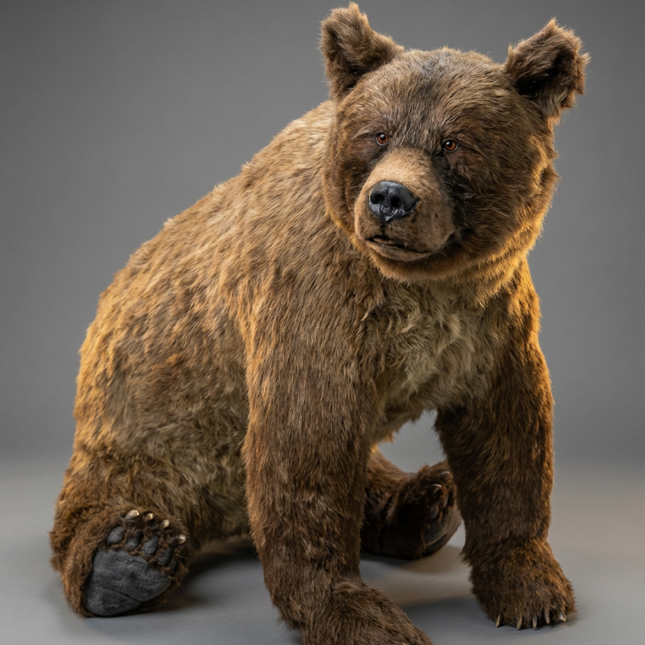 Полностью подвижные суставы позволяют медведю стоять, сидеть или принимать динамичные позы, как живой хозяин леса. Густой классический бурый оттенок имитирует натуральную шкуру, с детализированной мордой, стеклянными глазами и пластиковыми элементами для выразительности. Ручная работа гарантирует уникальность каждого экземпляра — идеально для коллекционеров, фотосессий или тематических событий.