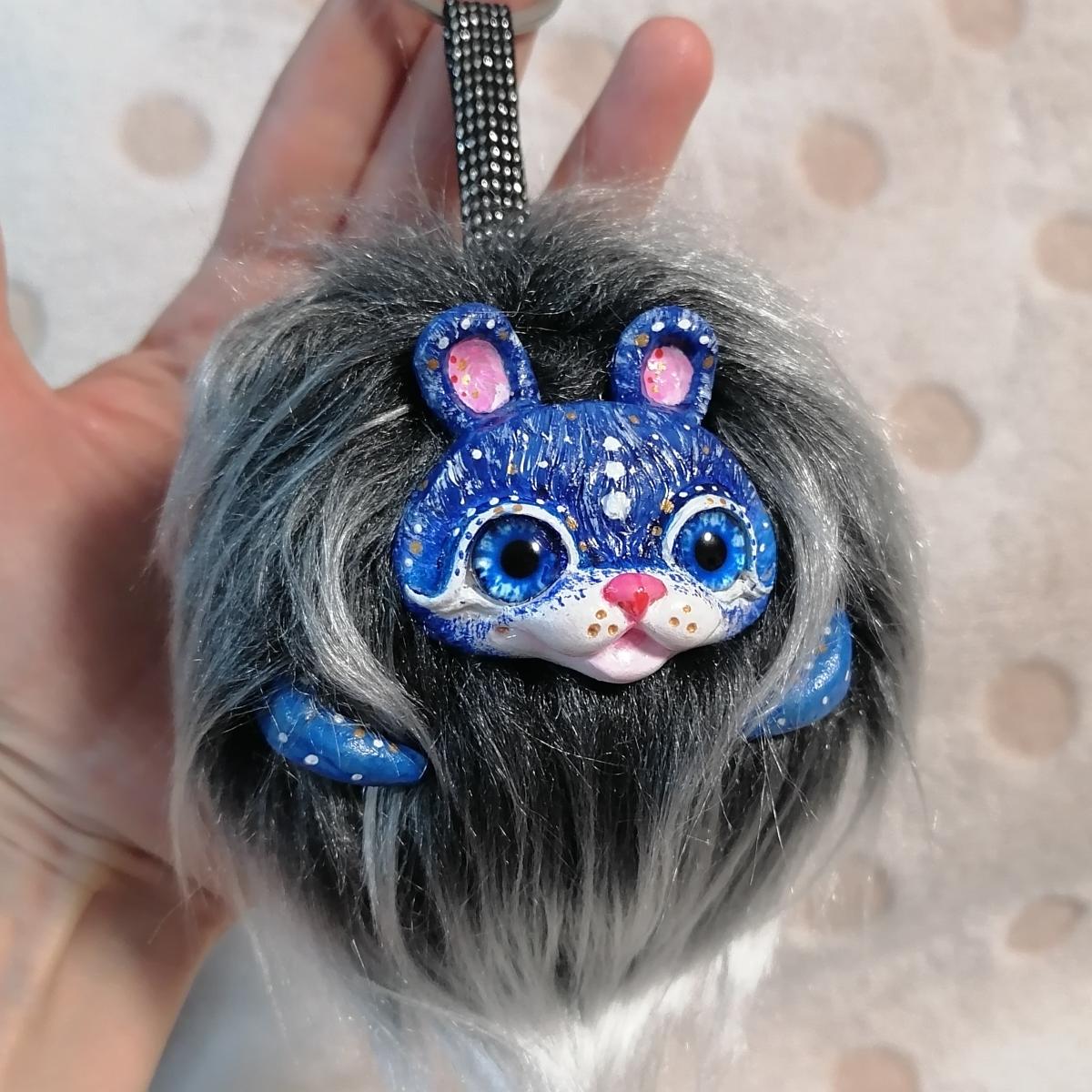 Милый брелочек из меха и полимерной глины. Размер 10х10 см. Подойдет как брелок на сумку (рюкзак) или как украшение интерьера. Ручки двигаются. Длина меха 4 см., можно аккуратно расчесывать. Выполнен из искусственного меха и полимерной глины, расписан акриловыми красками, наполнитель синтепух и стеклянный гранулят.