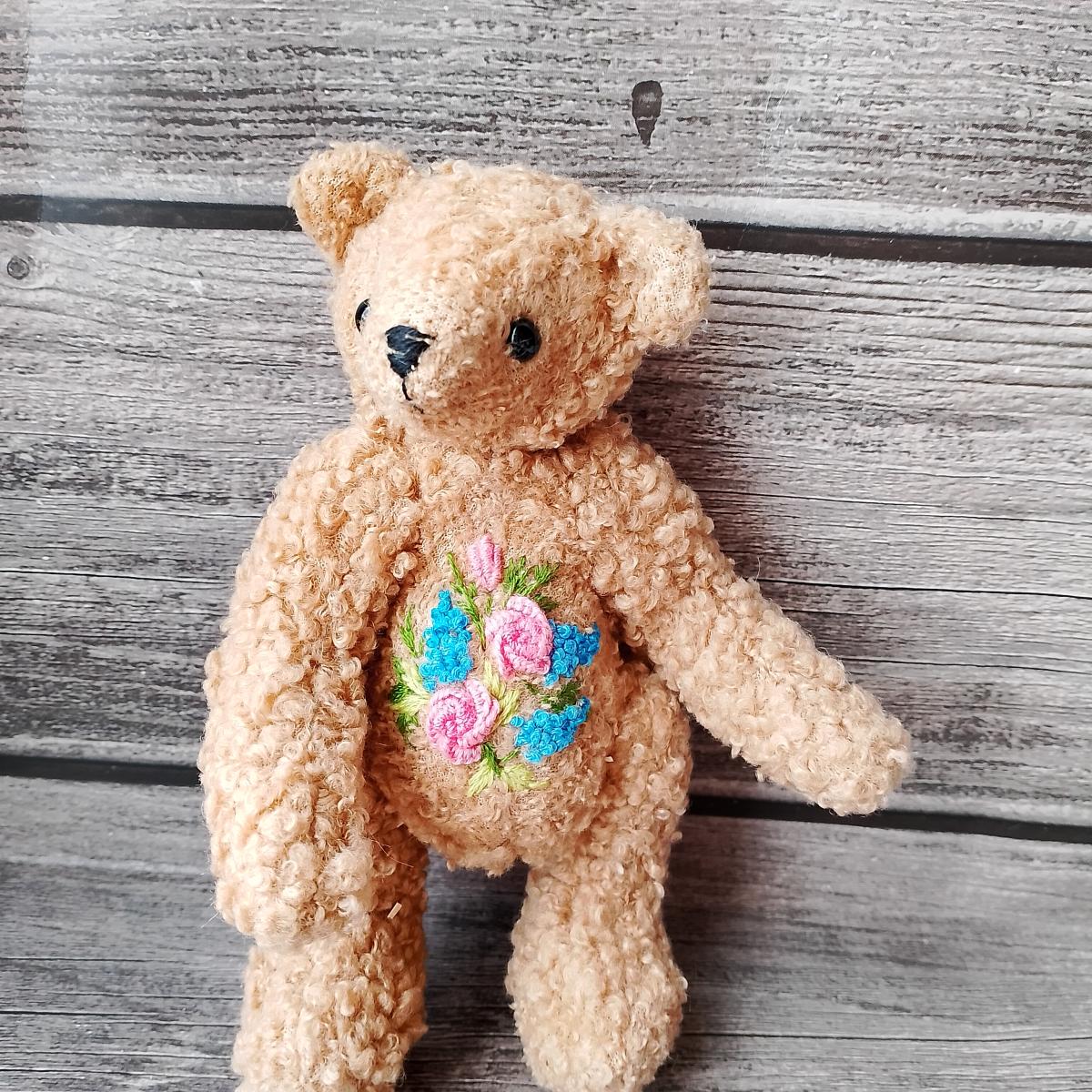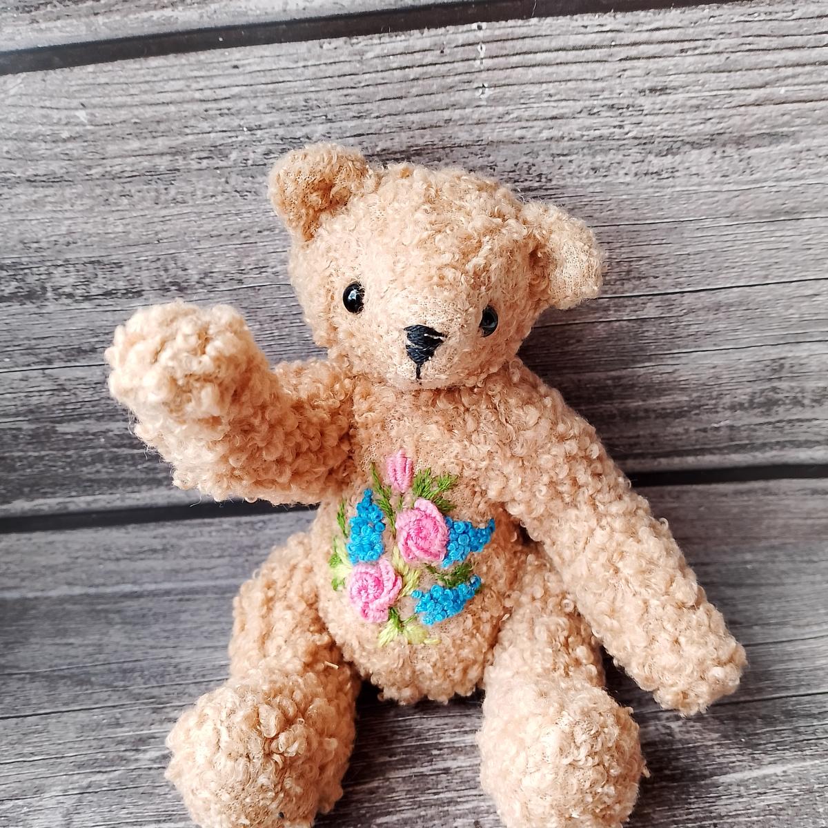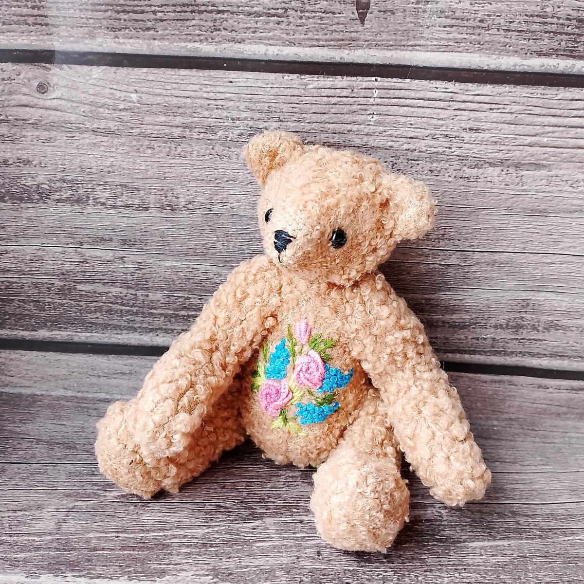 Мишка в стиле Тедди с подвижными лапами и головой, набит дубовыми опилками и гранулятом.Украшен бразильской вышивкой.