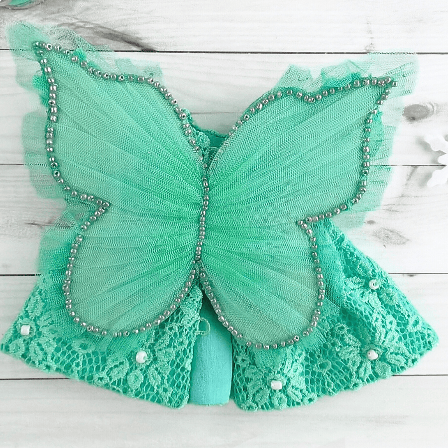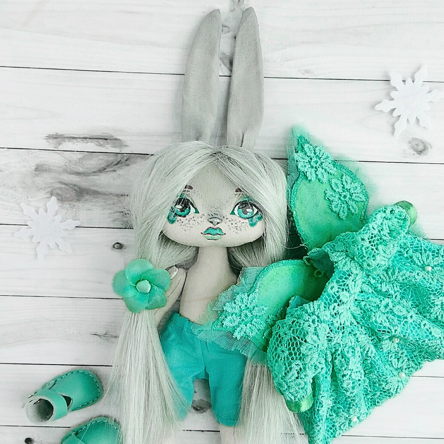 Кукла изготовлена из текстиля , платье из гипюра, сьемное , волосы искусственные, роспись лица сделана акрилом и закреплена лаком, крылышки украшены бисером.