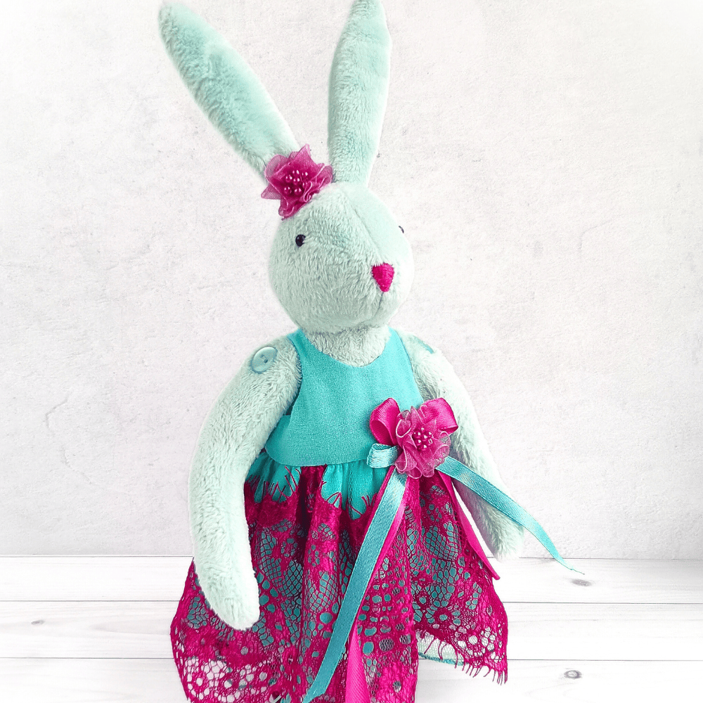 Рекомендация по уходу за изделием: платье можно стирать руками, применив гель для душа или шампунь, не выкручивать, не выжимать, сушить на чистом сухом полотенце, гладить паром, для плюшевого тела зайки можно использовать влажные салфетки, НЕ тяните лапки, НЕ РЕКОМЕНДУЕТСЯ выносить на улицу и НЕ стирать в стиральной машине. При бережном отношении и хорошем уходе плюшевый зайчик проживет очень долгую жизнь и станет верным вашим другом.