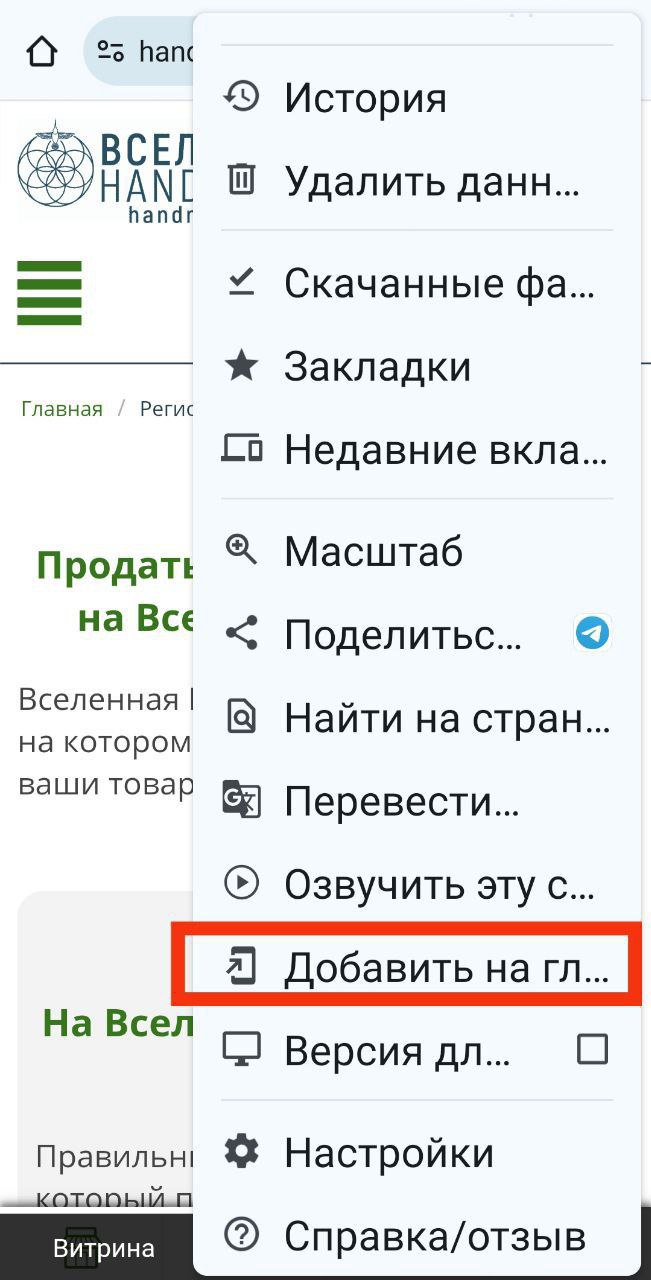 Для Android:Перейдите на страницу своего магазина или административной панели магазина. В правом верхнем углу нажмите на три вертикально расположенные точки, далее "Добавить на главный экран", появится всплывающее окно, выбрать "добавить". Теперь вход на сайт будет всегда под рукой.