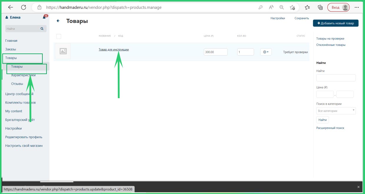 В левом меню войдите в раздел "Товары", подкатегория "Товары" вы увидите все свои товары. Нажмите на название товара, в котором будете указывать оптовые скидки.