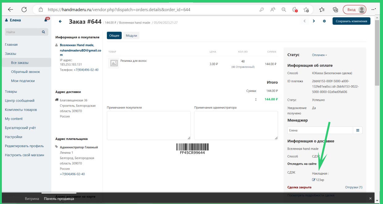 После отправки заказа, войдите в личный кабинет. Раздел "Заказы", подменю "Все заказы". Выберете заказ который отправили и введите трек номер отправки. Вписывайте номер отправки даже в том случае когда отправили не транспортной компанией Сдек. Продублируйте информацию по отправке покупателю в СМС сообщении.