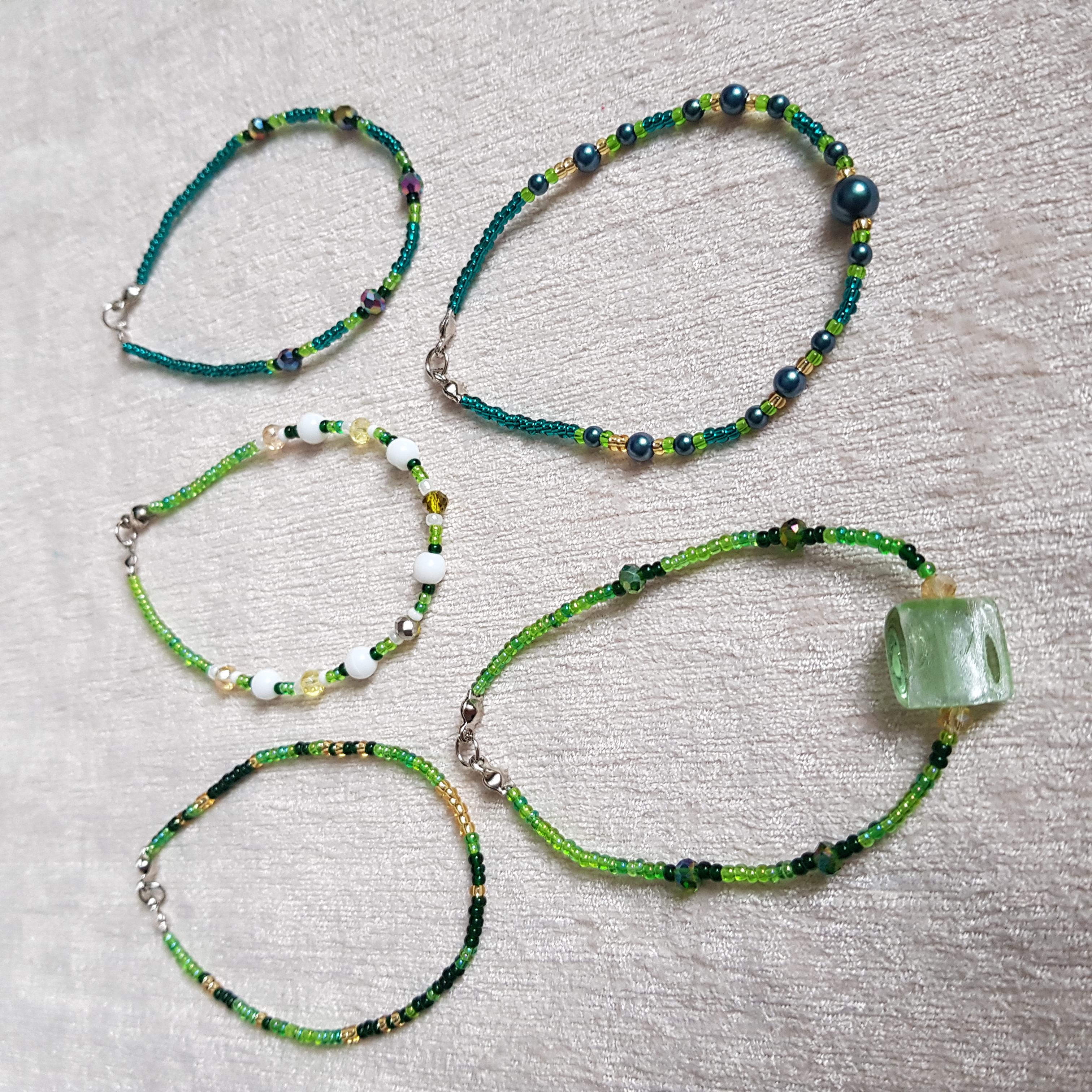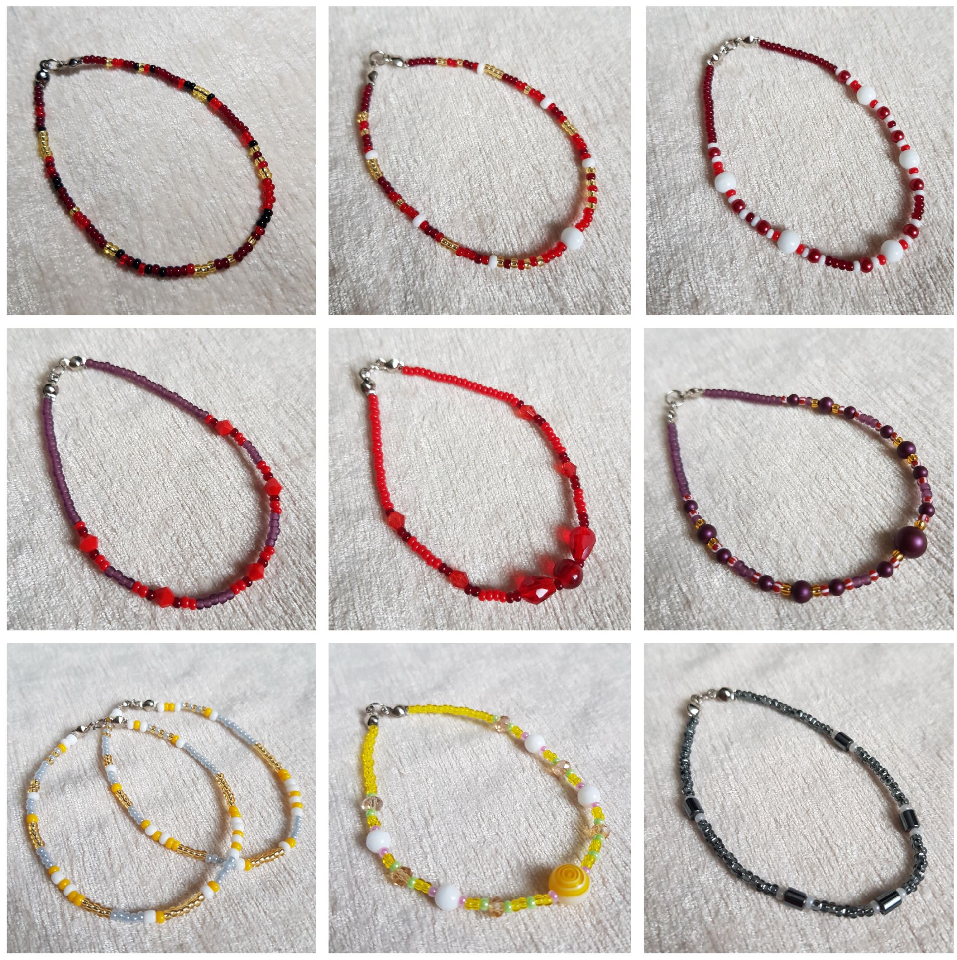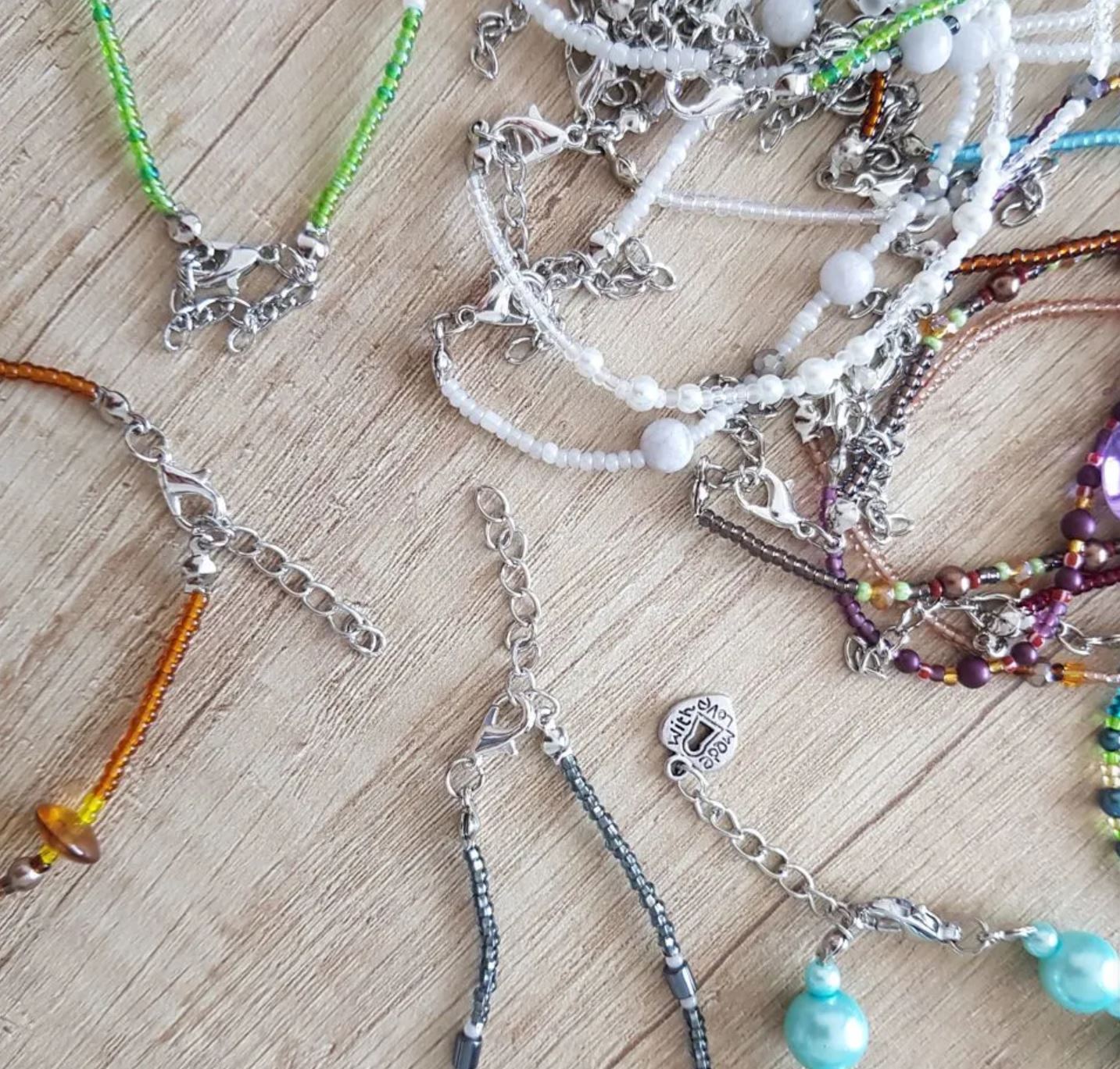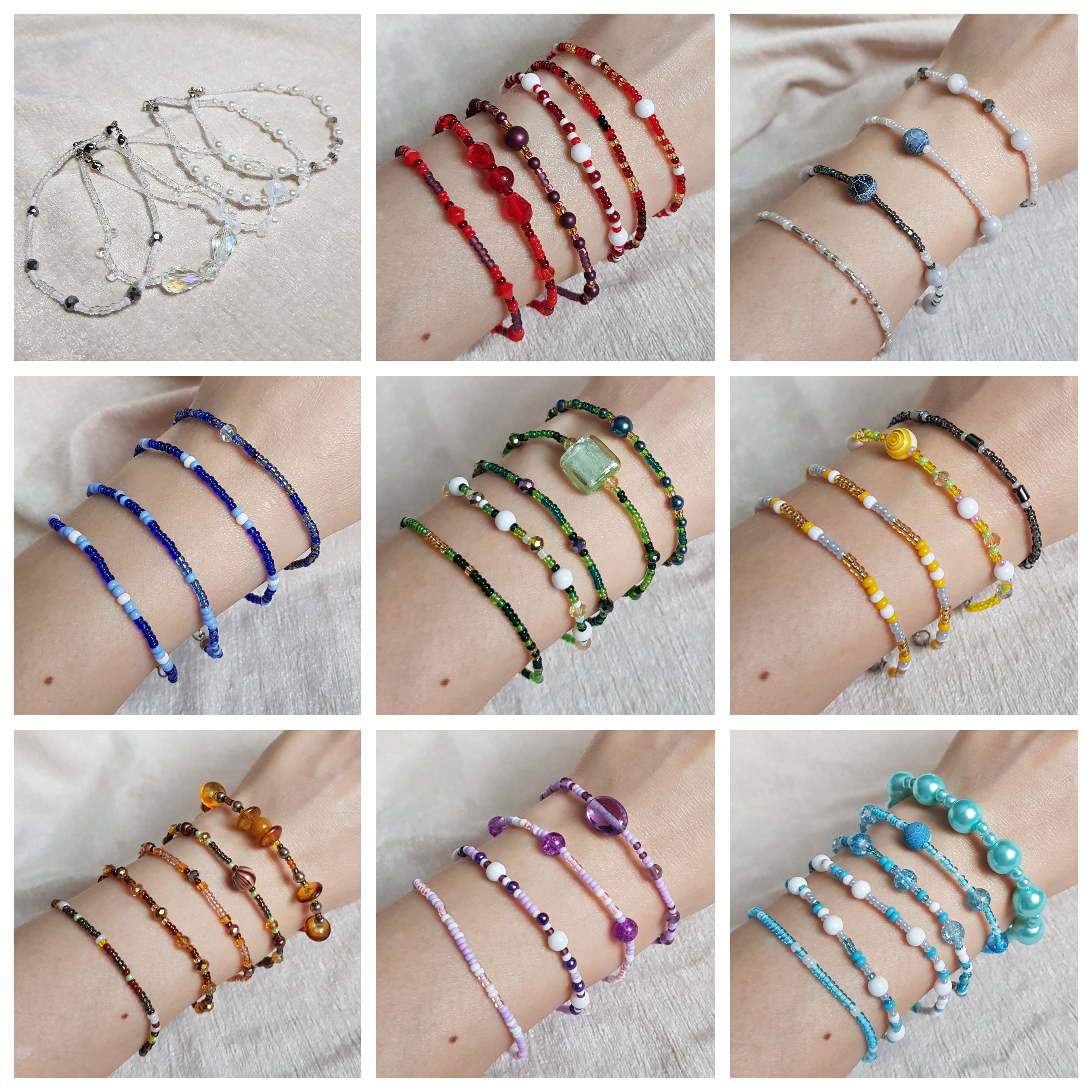 Все браслеты на эластомерной нити (силиконовая резинка) + цепочка для регулирования размера + карабин.