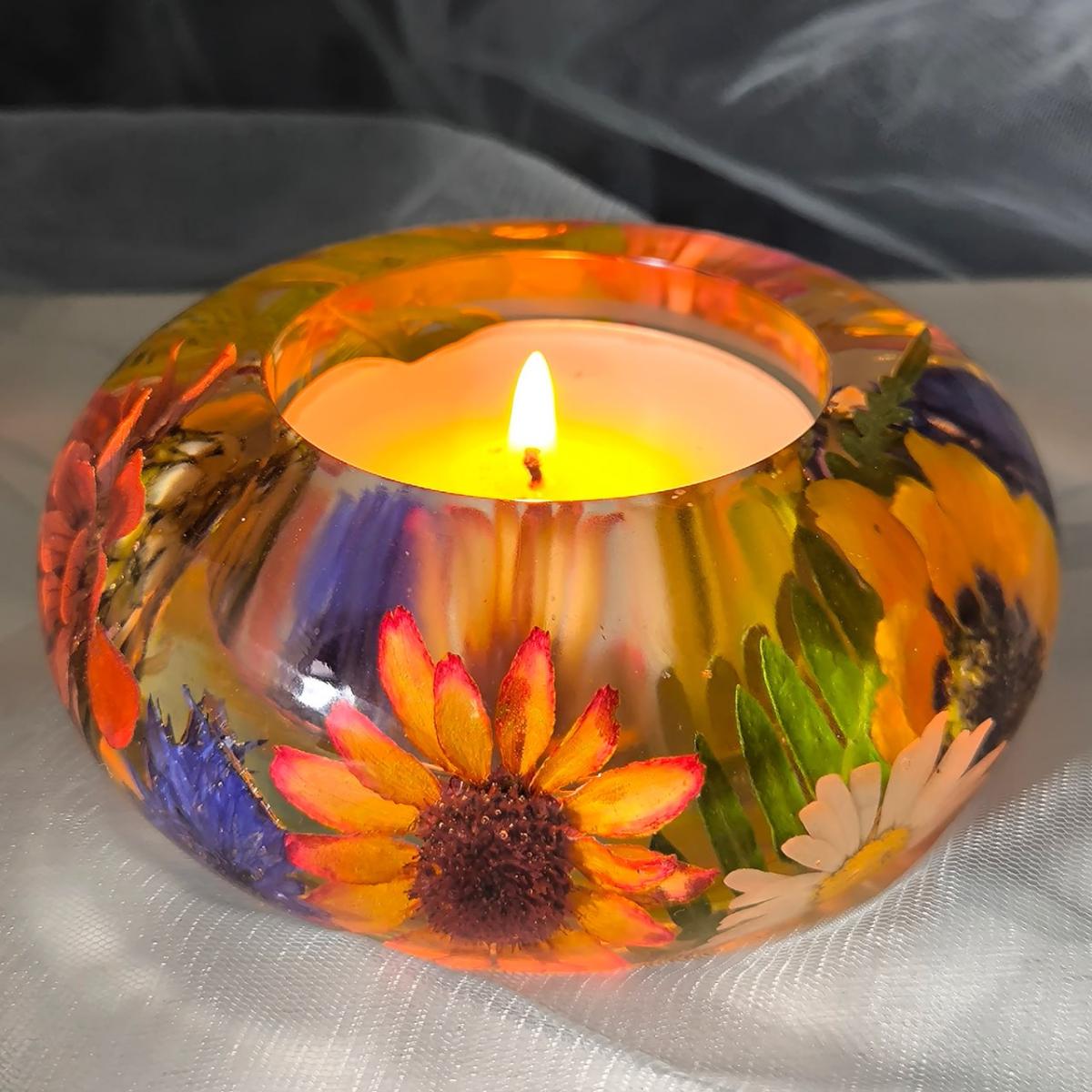 Большой подсвечник с цветами для чайной свечи