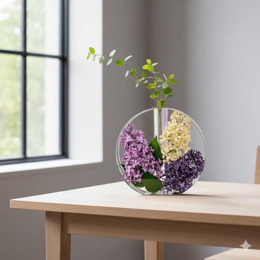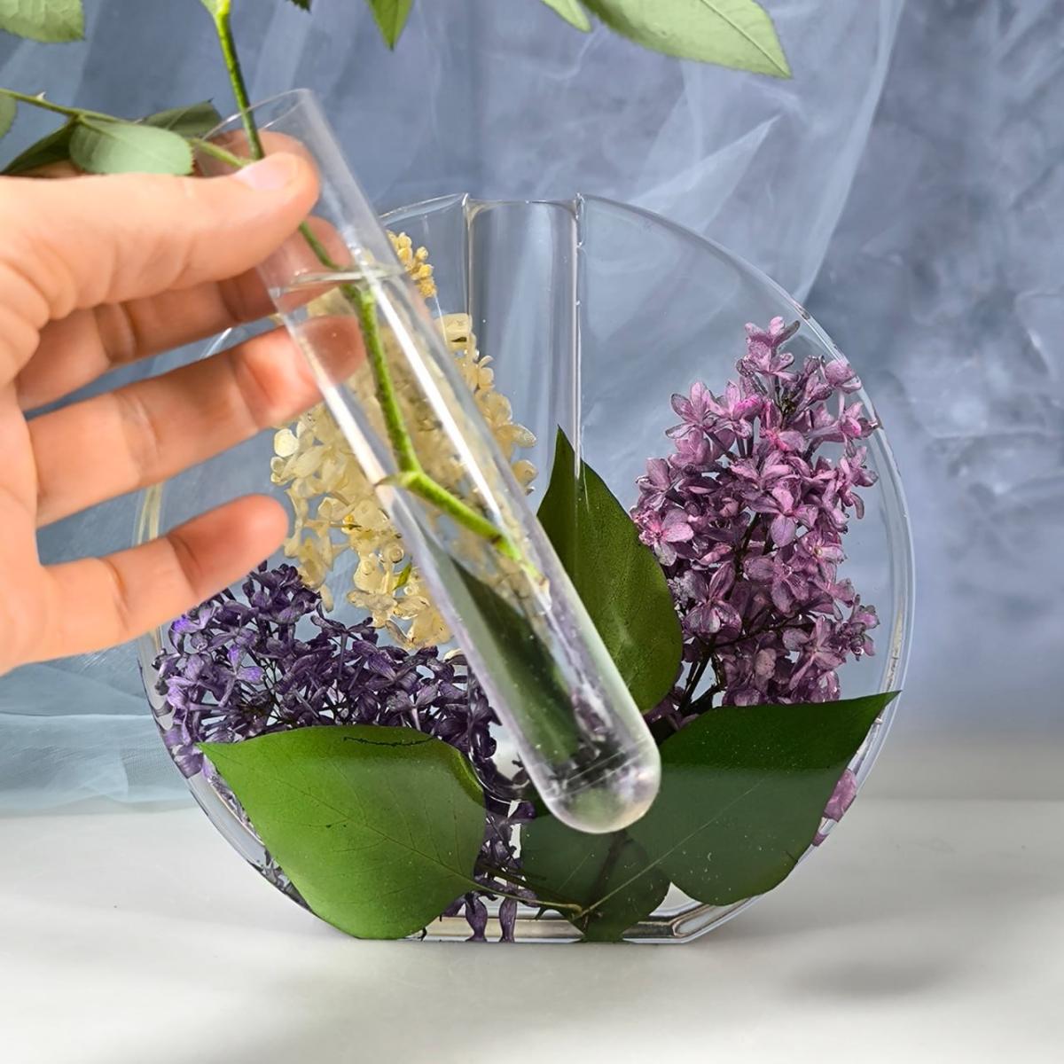 Ваза с колбой для одного цветка с настоящей сиренью внутри