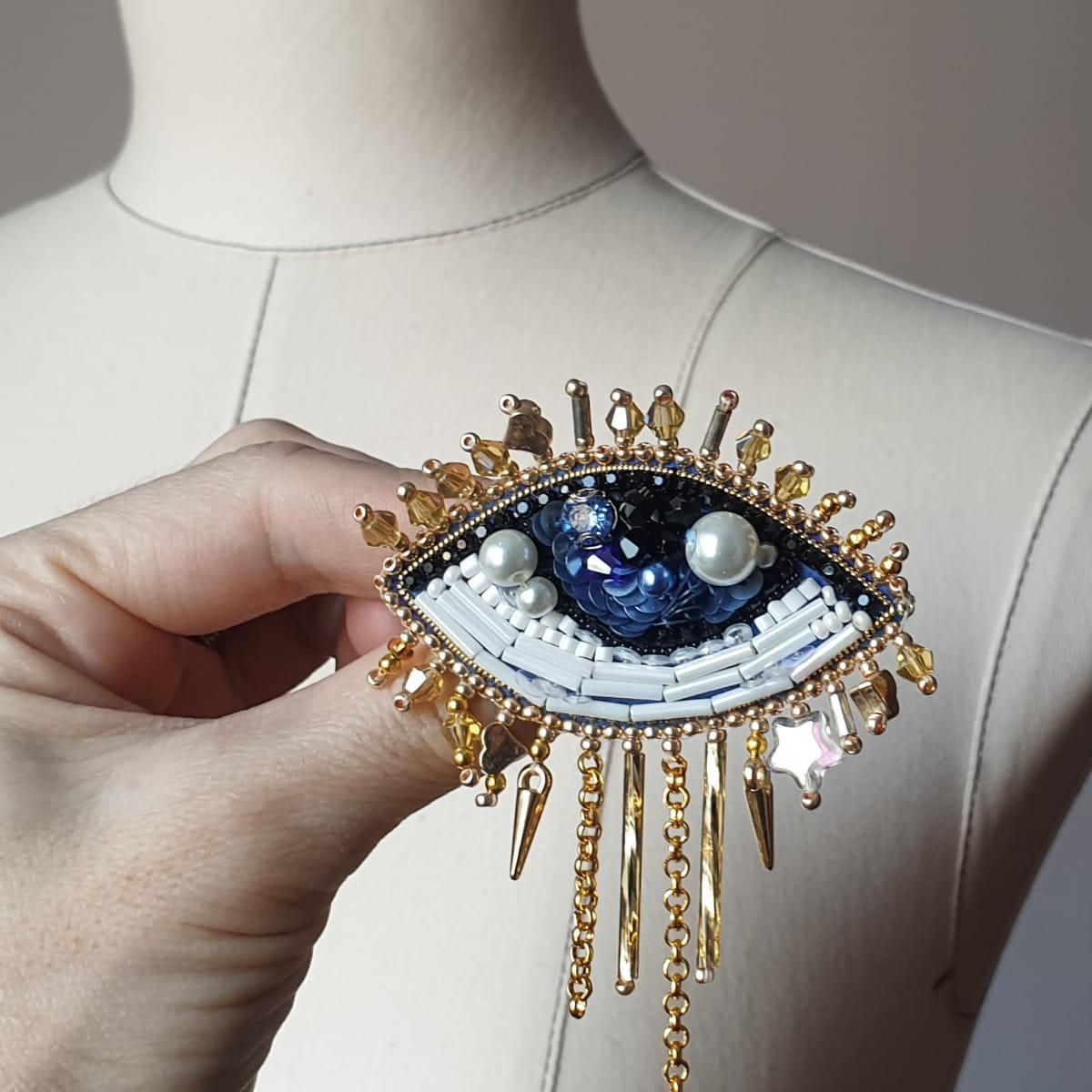 Минимальное количество для товара "Брошь из бисера глаз. Брошка булавка бижутерия на пиджак, пальто, свитер, платье." 1.