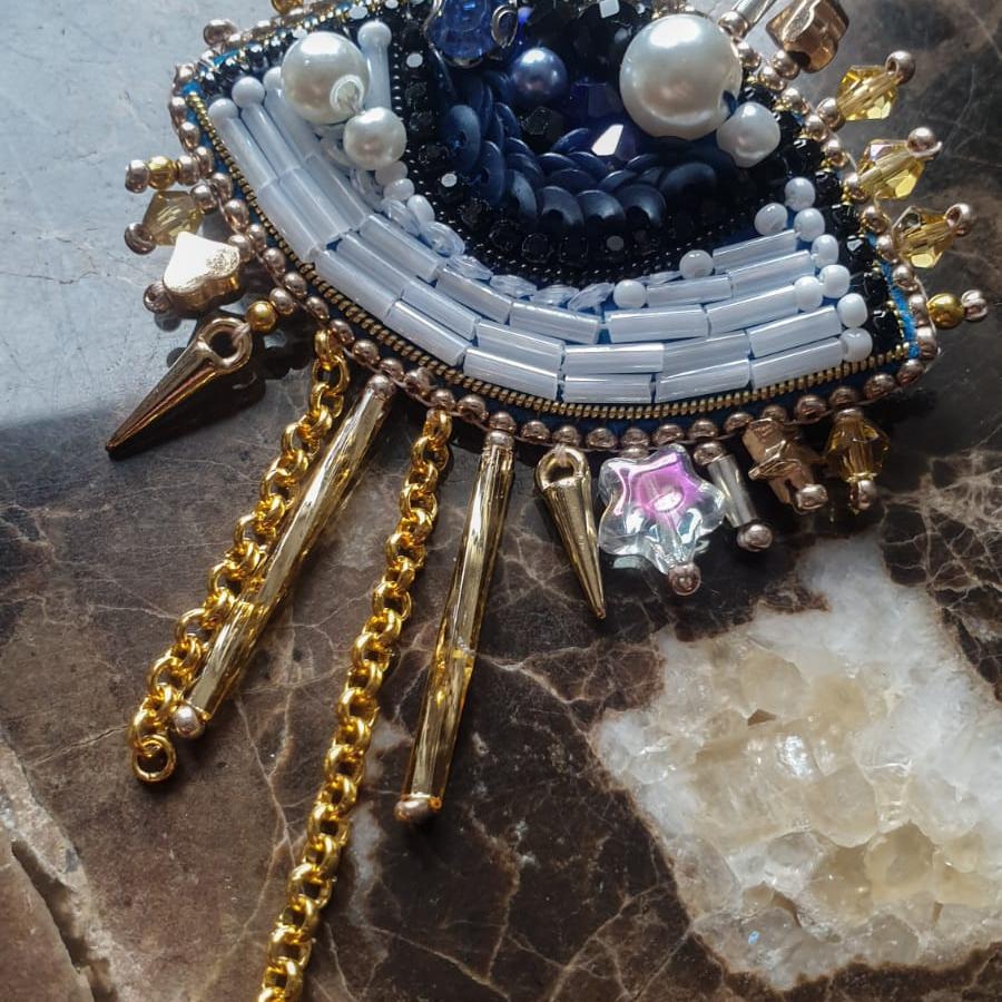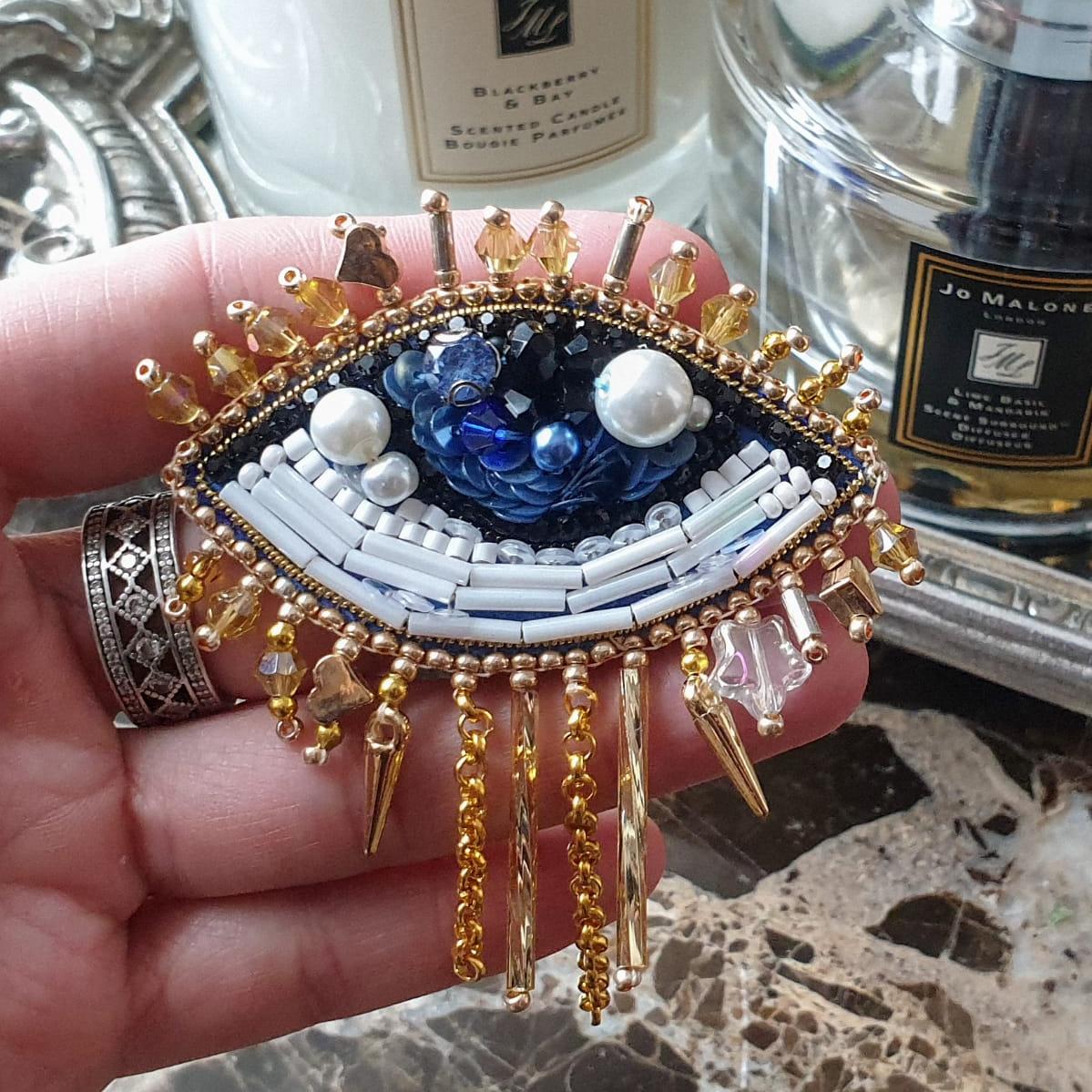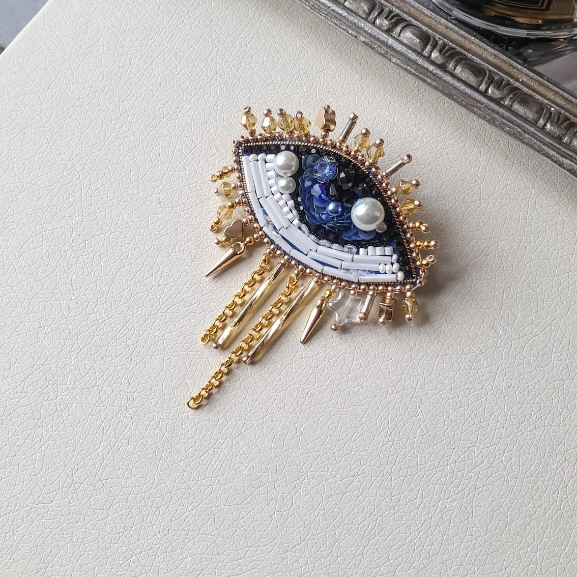 Брошь из бисера глаз. Брошка булавка бижутерия на пиджак, пальто, свитер, платье.