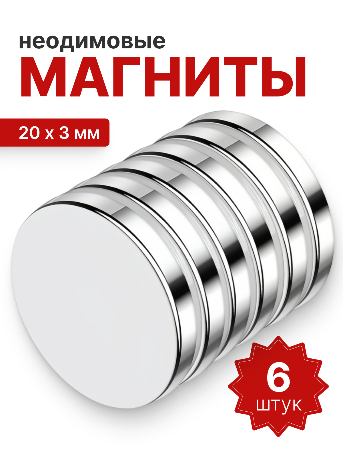 Набор мощных неодимовых магнитов 20×3 мм (6 шт.) – максимальная фиксация для офиса, дома и творчества!