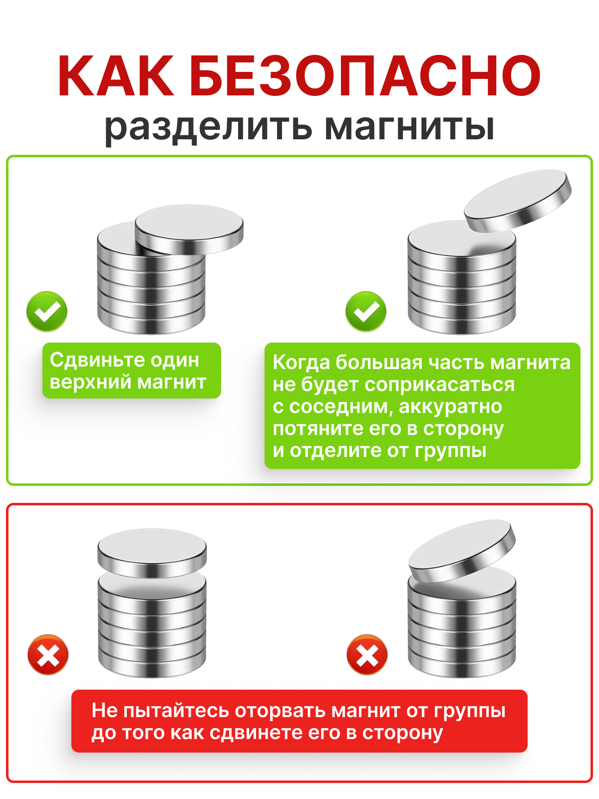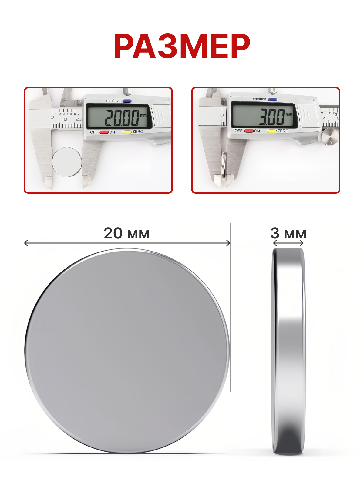 Суперсила в миниатюрном формате В вашем распоряжении – 6 профессиональных магнитов из сплава N52 (самый мощный класс!). Они в 5-10 раз сильнее обычных, но при этом компактные (20 мм диаметр, 3 мм толщина) и удобные в использовании.