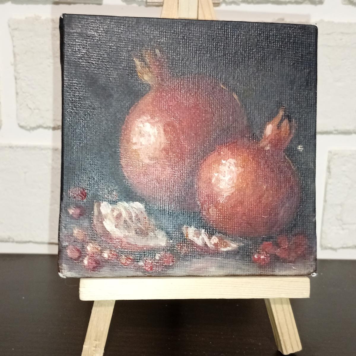 Мини-картина, холст, масло, размер 10х10 см., на мольберте.