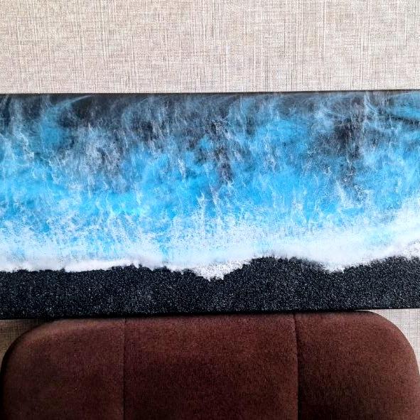 Картина ручной работы "Ночное море" выполнена из эпоксидной смолы в 3 слоя. Глубокий чёрный фон подчёркивает динамику и красоту волн, создавая ощущение движения и свежести.