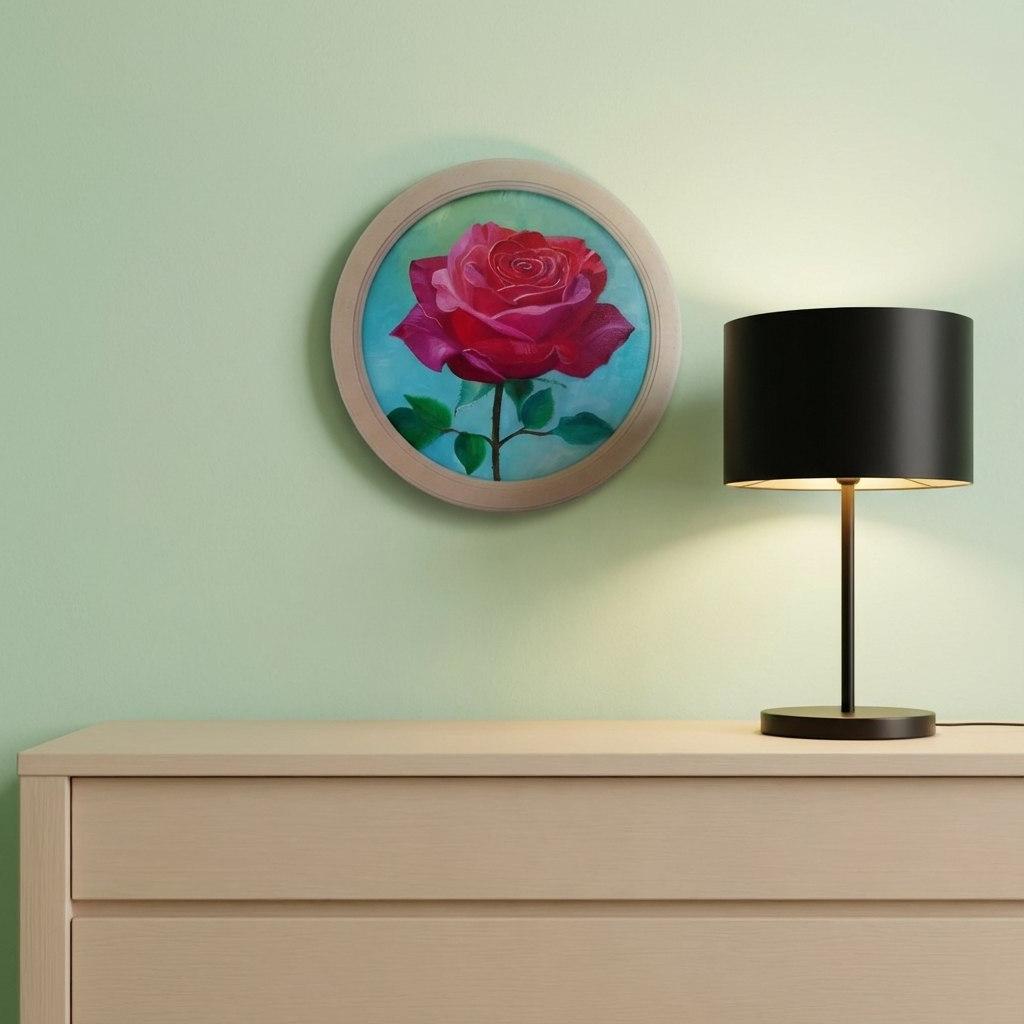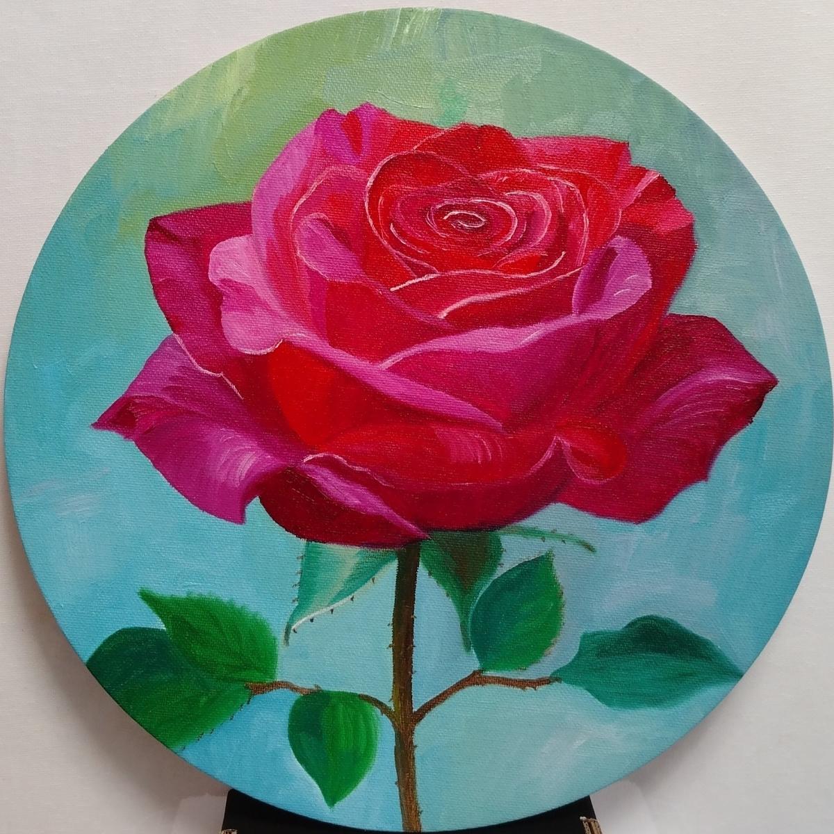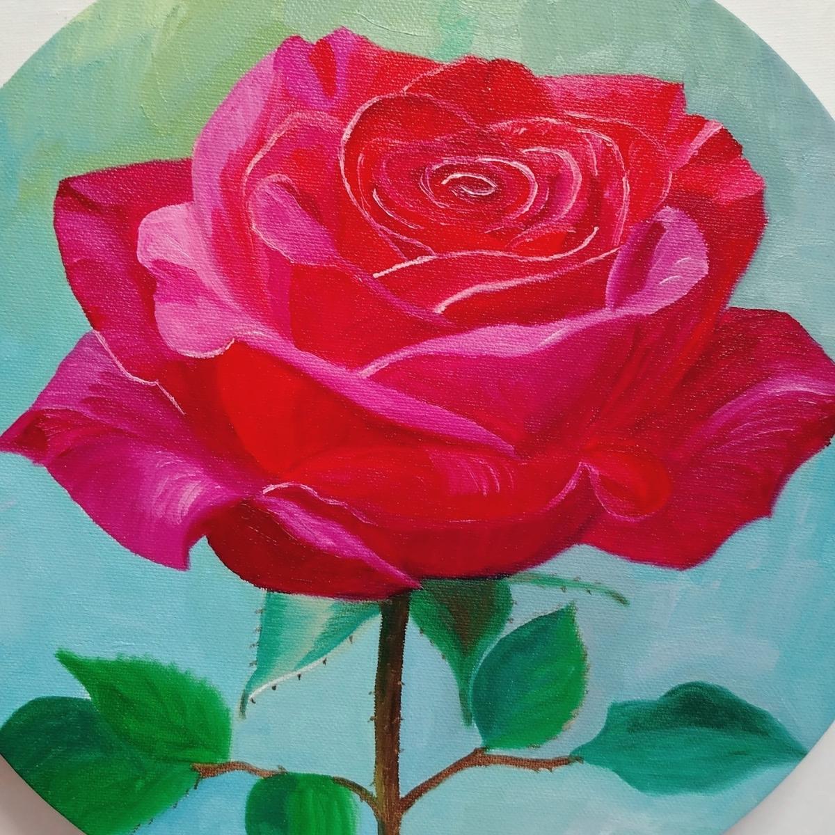 На картине изображена роза, выполненная в технике масляной живописи. Размер полотна составляет 30х30 см. Цветы на картине выполнены в ярких и насыщенных тонах, что придает им особую выразительность и живость. Художник использовал мягкие и плавные мазки, чтобы передать текстуру лепестков и листьев. Фон картины выполнен в нежных пастельных тонах, что создает контраст с яркими цветами розы и подчеркивает ее красоту. Картина будет прекрасным украшением для любого интерьера и станет отличным подарком для любителей искусства. Картина дополнительно покрыта лаком и помещена в раму.