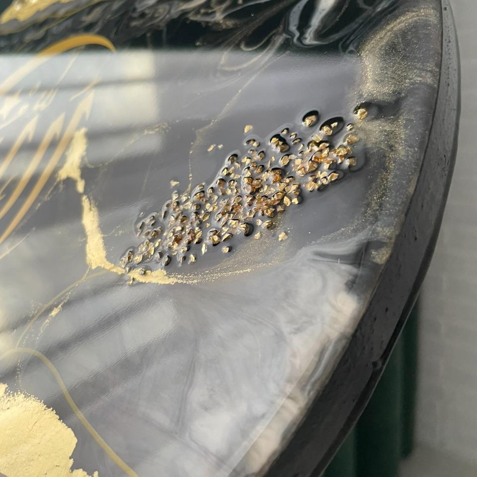 Чёрный цвет в сочетании с золотом,стеклокрошка и идеальный глянец смолы придают картине роскошь и завораживающий эффект