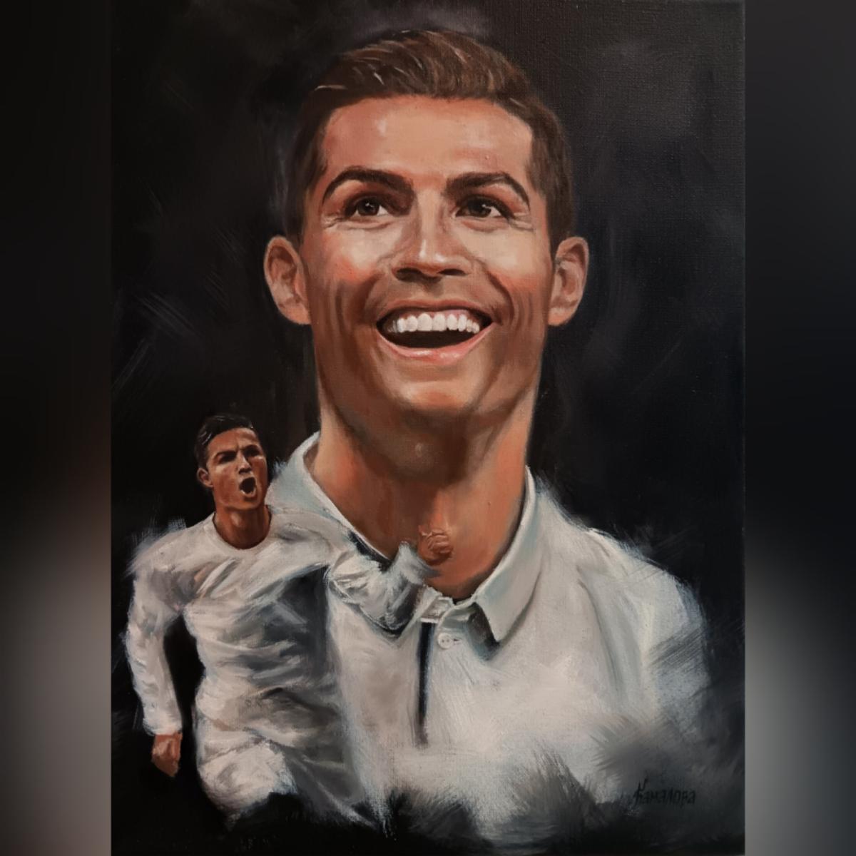 Продам портрет маслом на холсте ручной работы футболиста Криштиану Роналду. Холст натянут на подрамник. Этот портрет — визуальный манифест успеха. Каждый мазок передает ту самую концентрацию перед решающим ударом, которая заставляла замирать миллионы сердец. Этот образ в кабинете или гостиной каждый день напоминает: «Нет ничего невозможного».