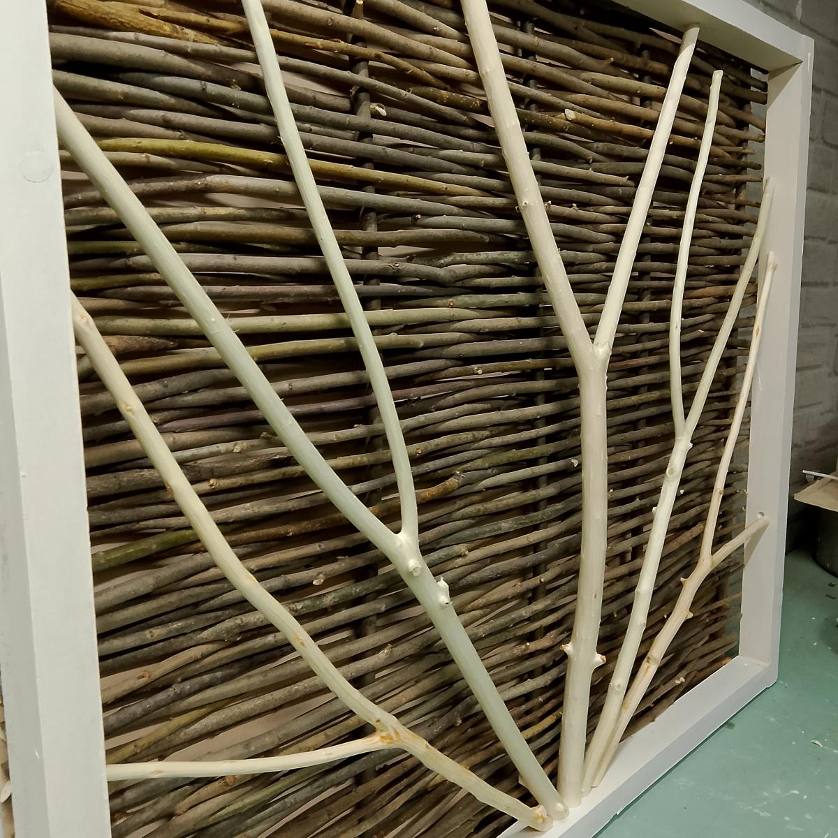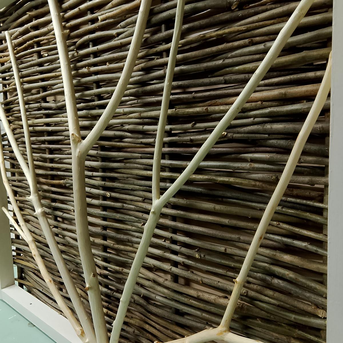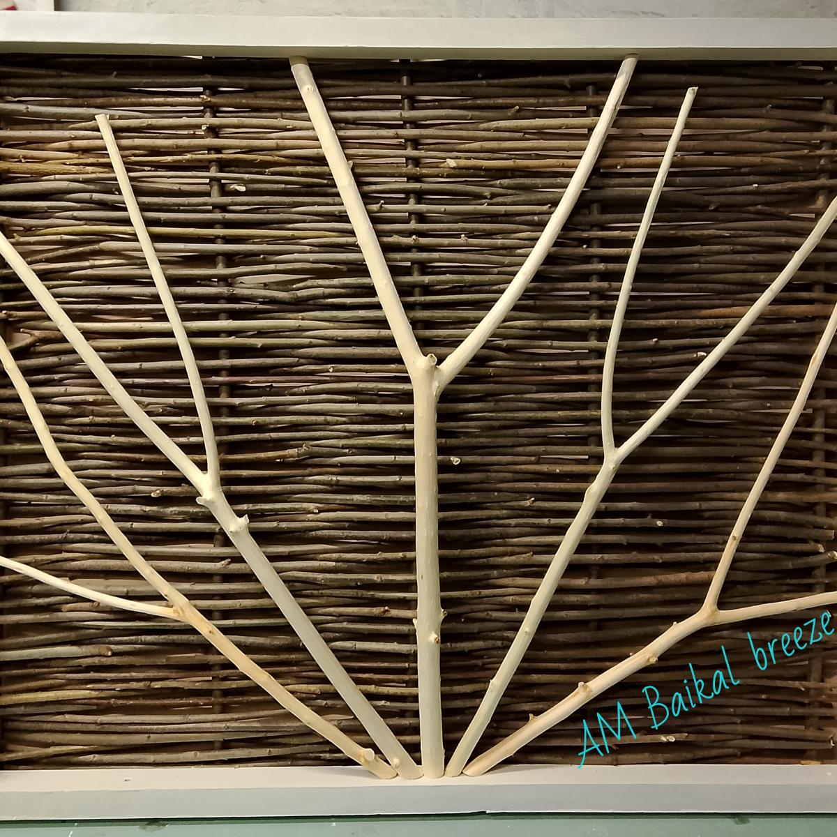Эстетичный дизайн, лёгкость установки, добавляет уют и гармонию к вашему интерьеру. Размеры (высота-ширина) 0,94 х 0,8м. Материалы: рамка - сосна, платформа - ЛДСП, фон - ива, ветки - черемуха. Обращаем ваше внимание на то, что это изделие экспериментального типа, касаемо эстетики - места крепления заготовок к рамке просматриваются под слоем акриловой краски, сбоку просматривается промежуток между рамкой и платформой, фасадная часть безупречна. Сборка качественная! Идеально подойдёт для внешнего декора( терраса, беседка, дача). Готовы выполнить размер и вид покрытия под ваш персональный заказ.