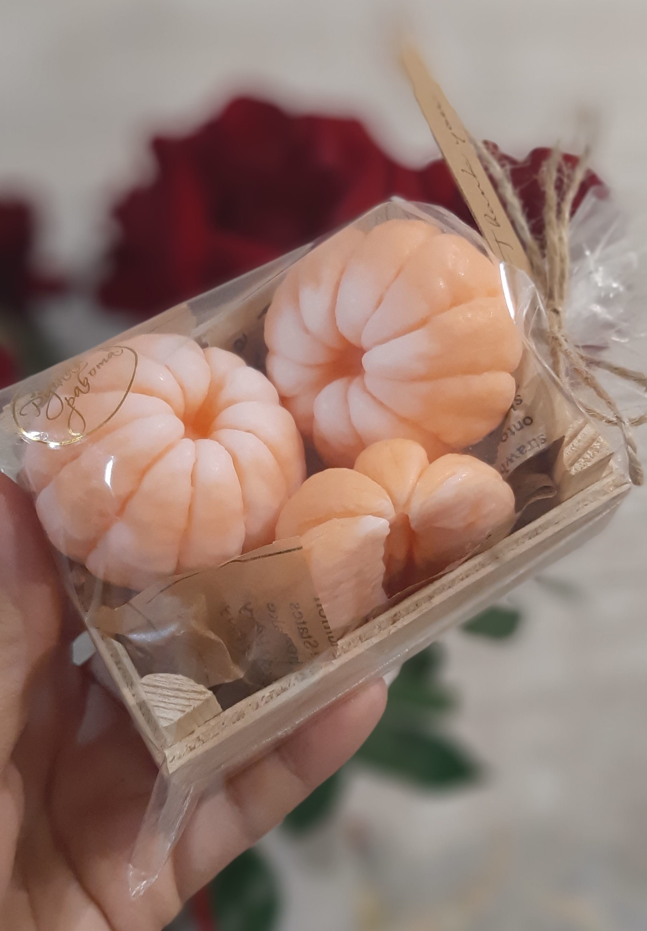 Можно собрать любой набор или приобрести одну штучку. Какждая мандаринка упакована индивидуально.