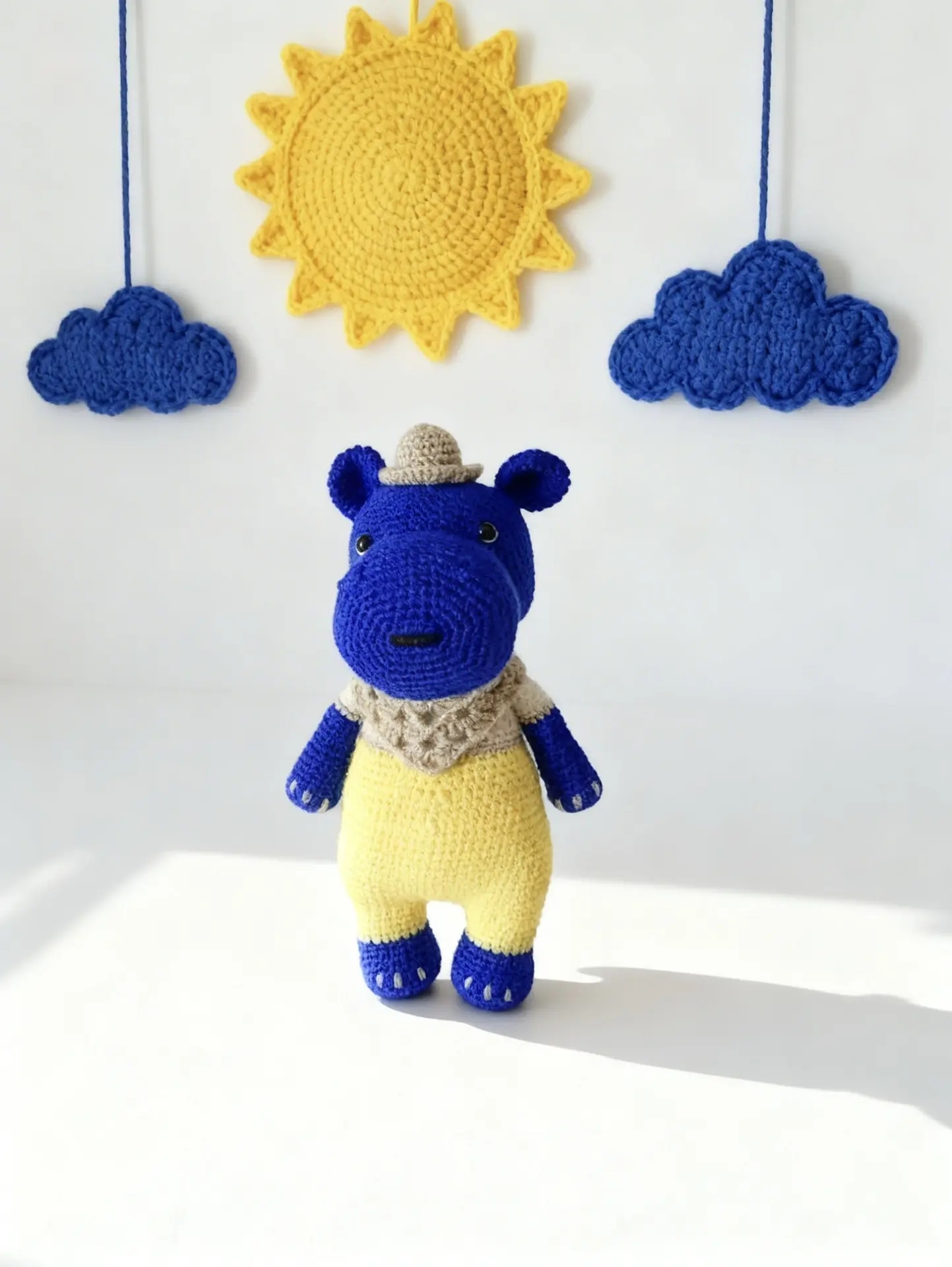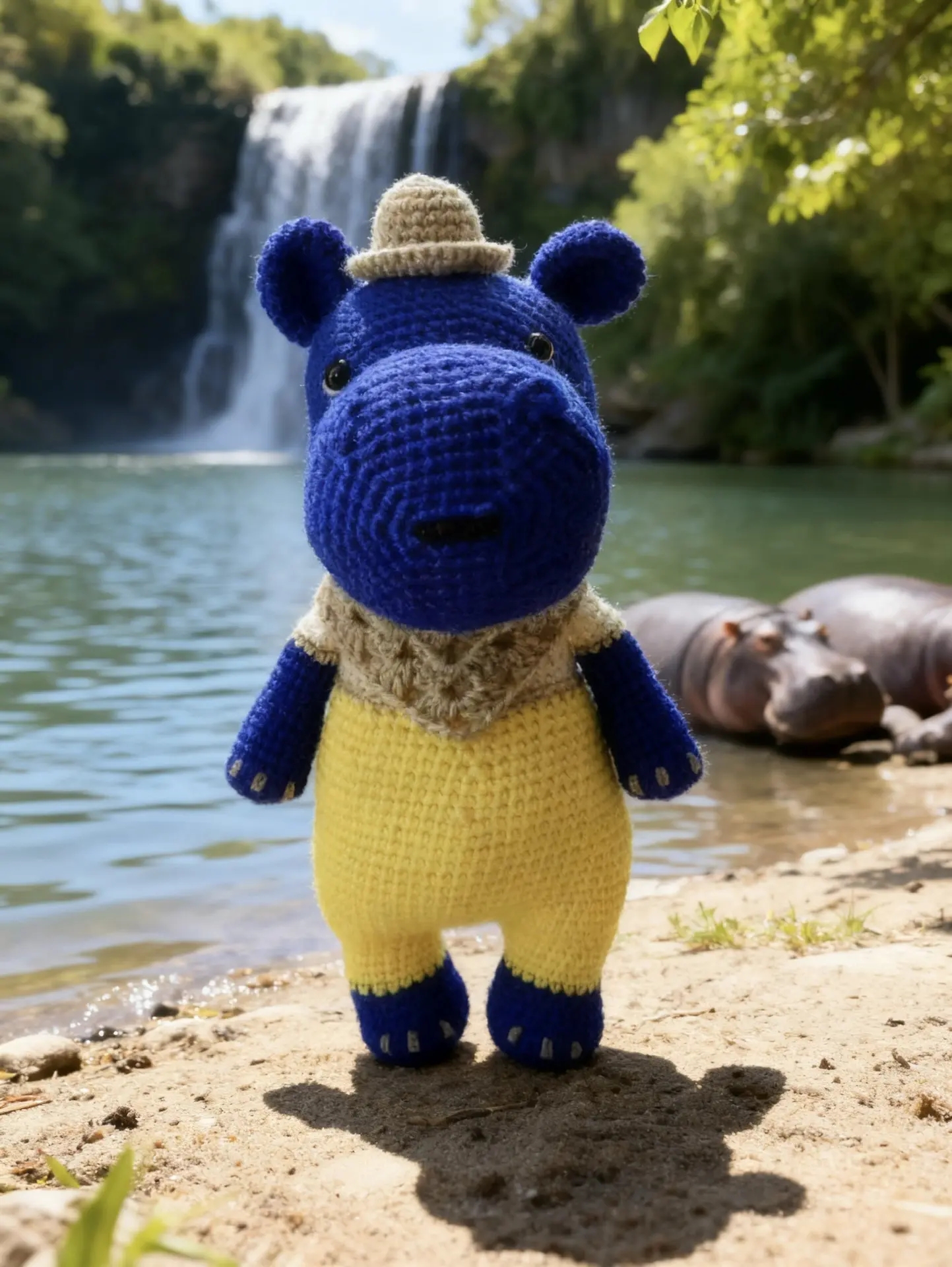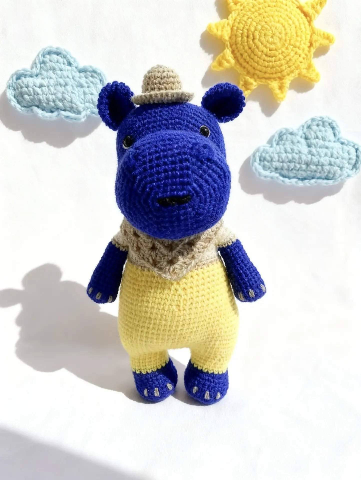 Бегемотик Гиппопоша амигуруми. Высота игрушки - 32см. Материалы: пряжа -  бейби акрил, хлопок; глазки на безопасном креплении, холлофайбер. Шейный платок снимается. Гиппопоша очень милый и мягкий, ищет друга для игр и прогулок.