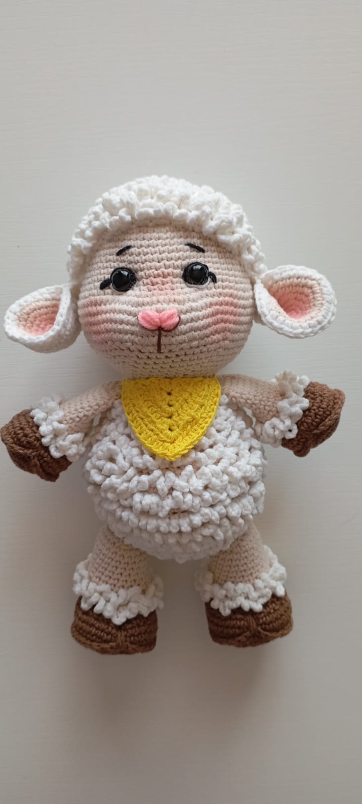 Этот мягкий и уютный друг станет отличным подарком для детей и любителей уникальных аксессуаров. Ягненок выполнен из высококачественной пряжи, безопасной для детей. У него милое детализированное лицо с блестящими глазами и розовыми щечками, дополняемое ярким желтым платком на шее. Эта игрушка прекрасно подходит для объятий и игр, и легко станет любимым спутником вашего ребенка.