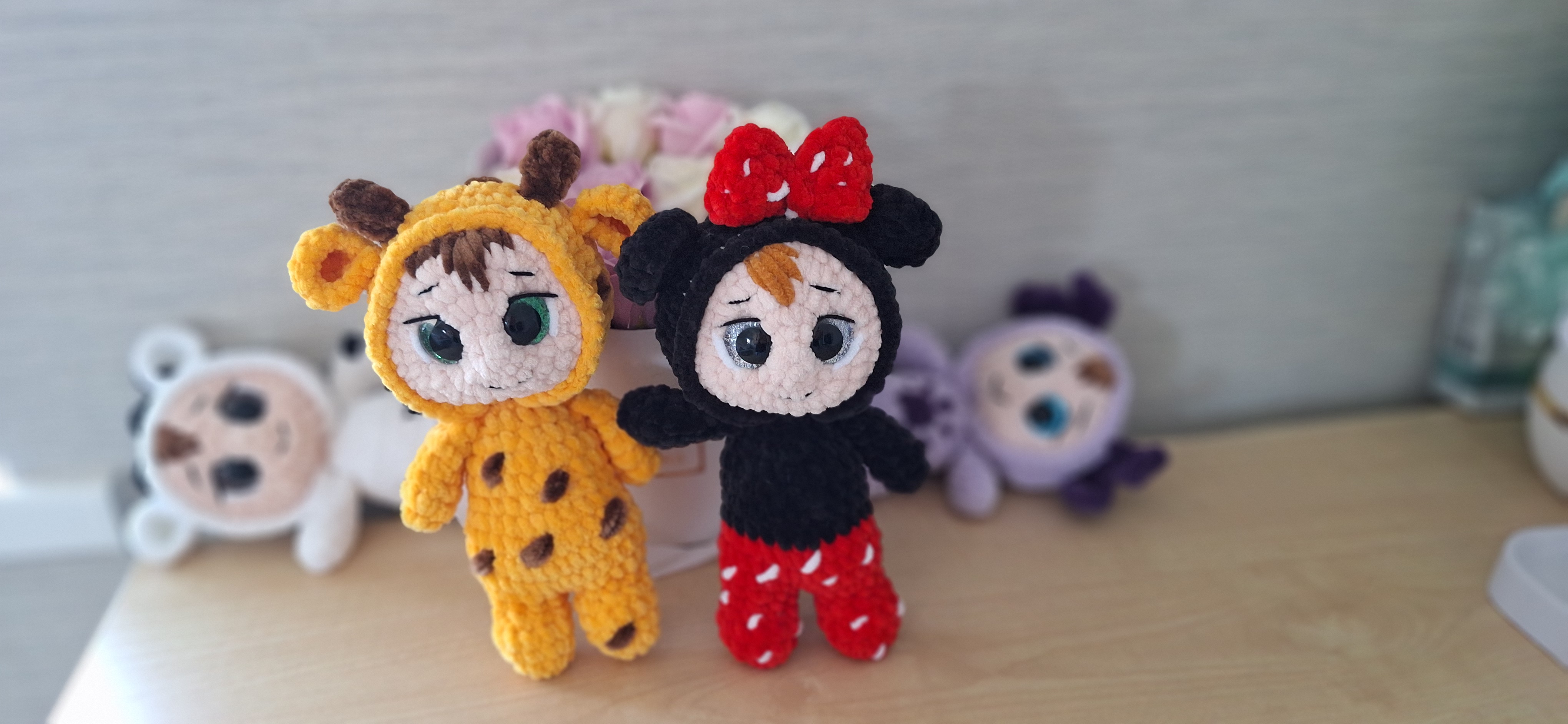 Вязанные пупсы ручной работы, ростом около 22см,удобные для детской ручки, голова на суставном креплении- поворачивается.