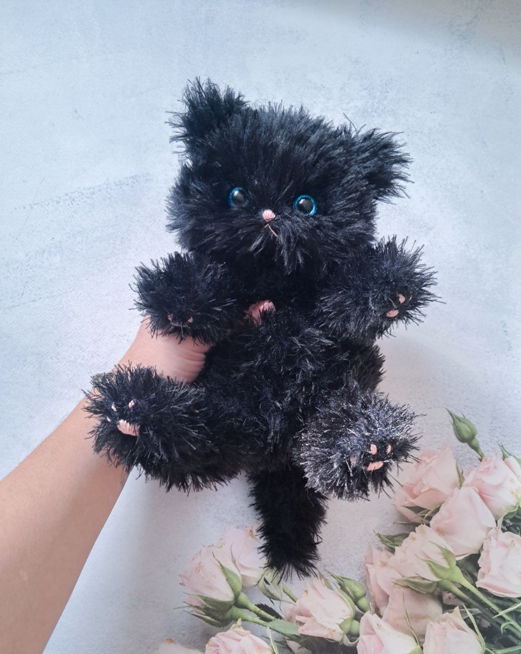Минимальное количество для товара "Котёнок вязаный, пушистый, черный Пушок" 1.