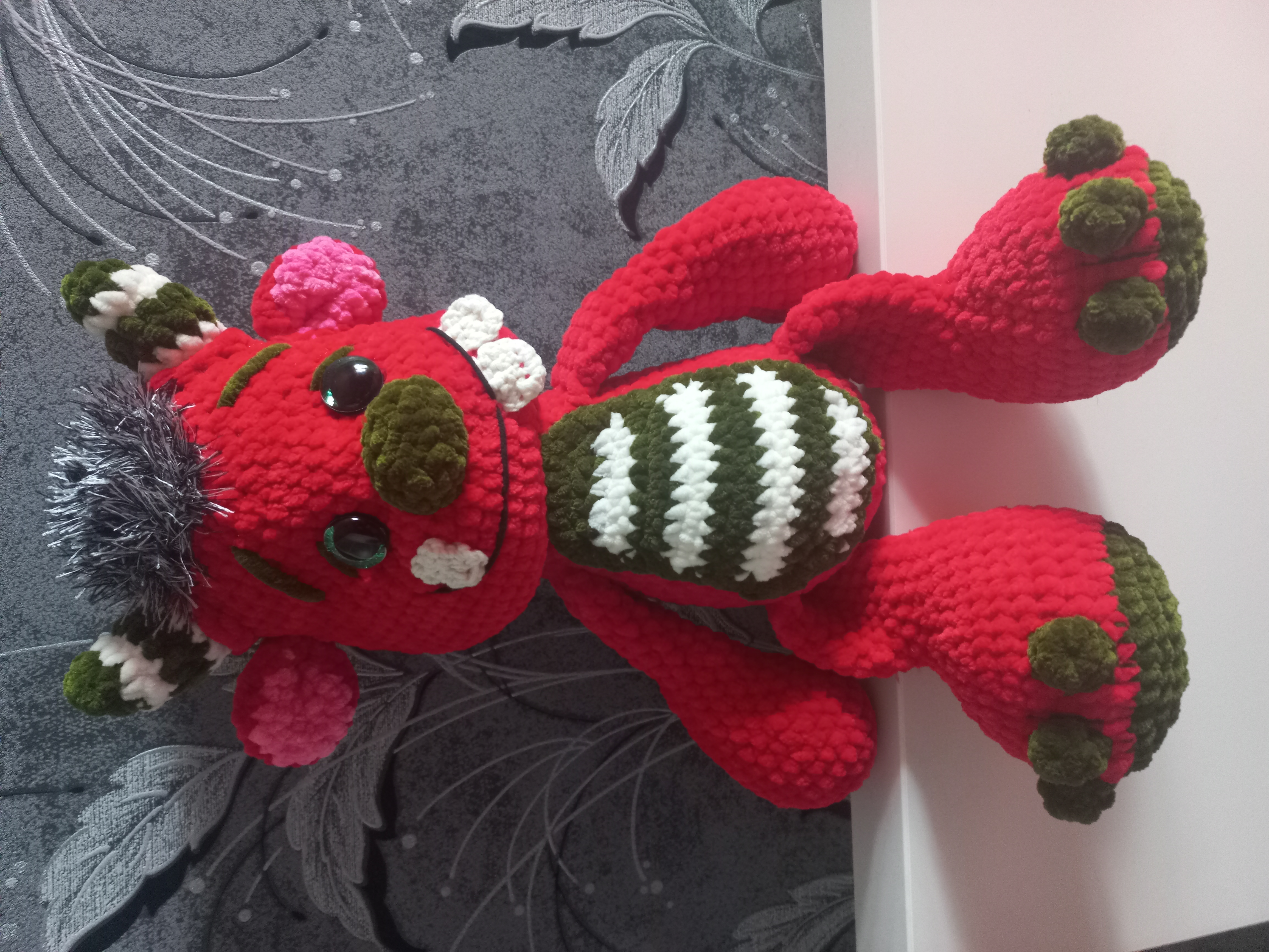 Игрушка из плюшевой пряжи,глазки на безопасном креплении,наполнитель халофайбер.