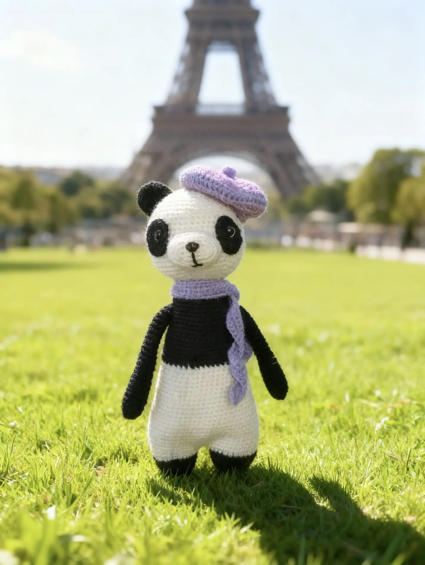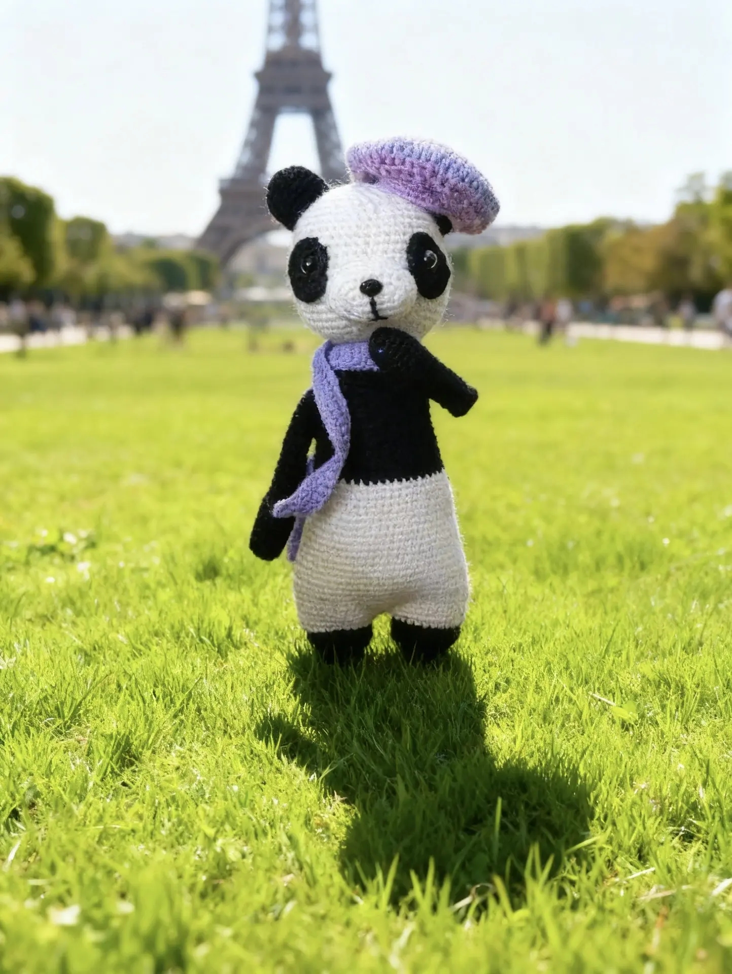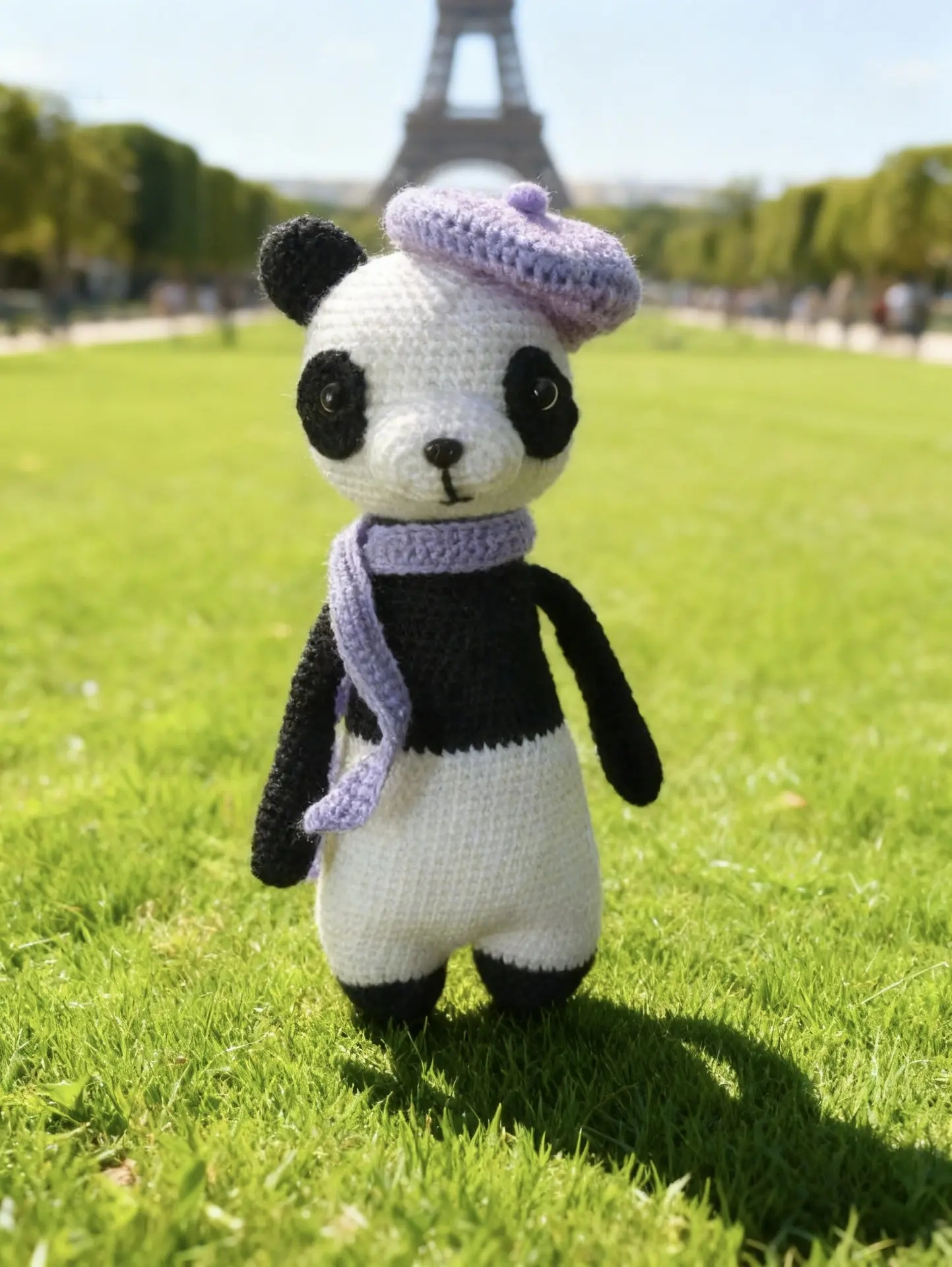Панда Мишель амигуруми. Высота игрушки - 31см. Материалы: пряжа - бейби акрил, хлопок; глазки на безопасном креплении, холлофайбер. Шарфик и берет снимается. Мишель очень любит путешествовать. Станет прекрасным компаньоном в играх и прогулках.